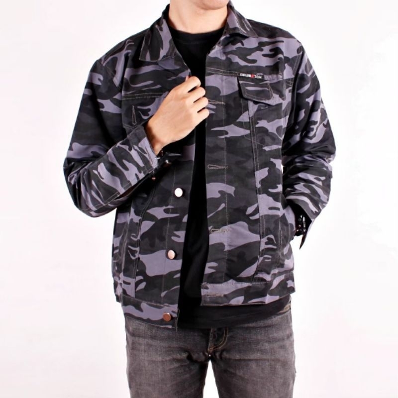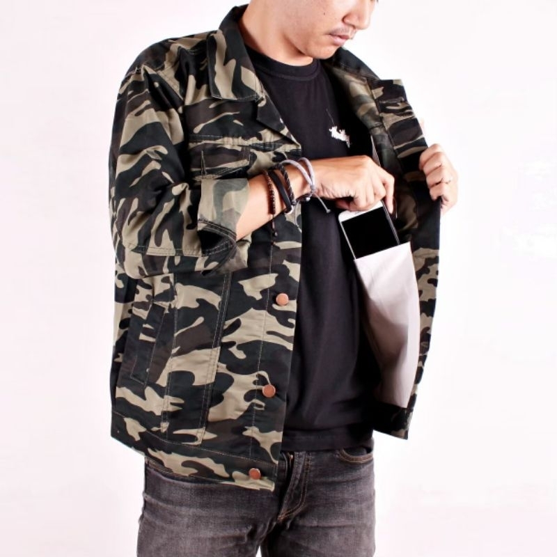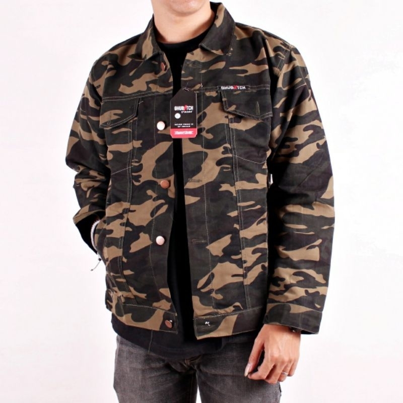 Jaket Camo Pria Army Loreng Bahan Canvas Twill