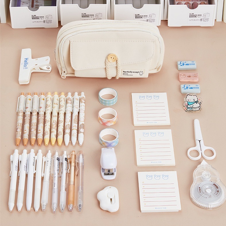 Tempat Pensil Korea Multi Sekat Kapasitas Besar Katun Oxford
