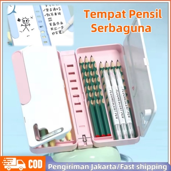 Kotak Pensil Lipat Multifungsi Dengan Papan Tulis dan Tatakan Buku / 2in1 Tempat Pensil Serbaguna / Pencil Case Book Hol