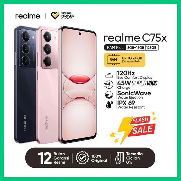 REALME C75 X 8/256GB GARANSI RESMI Helio G81 Ultra IP68/69 Anti debu & Air NFC Baterai 5600mAh 45W Fast Charge