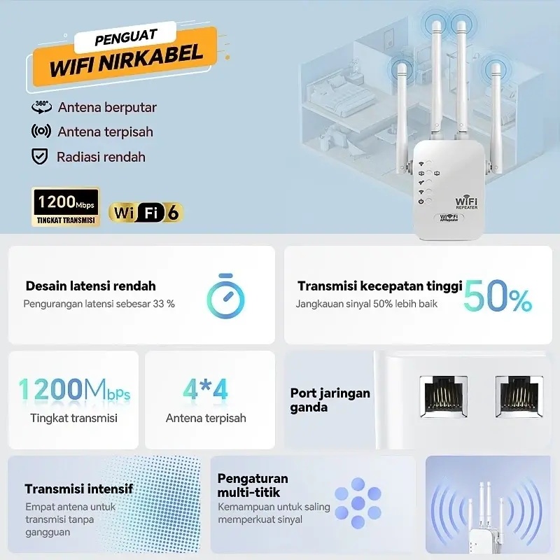 WIFI 300MBPS24G REPEATER WIRELESS WIFI RANGE EXTENDER ROUTER REPEATER PENGUAT SINYAL AMPLIFIER SIGNAL BOOSTER 4 ANTENNA