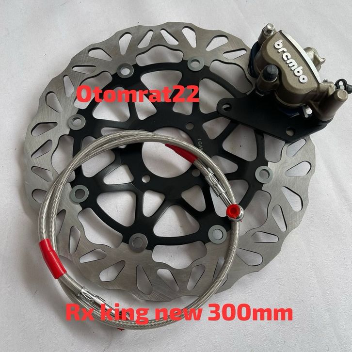 PIRINGAN DISC CAKRAM RX KING NEW 300MM 1PAKET KALIPER SAMURAI 2PISTON PLUS SELANG REM 95CM CARBON