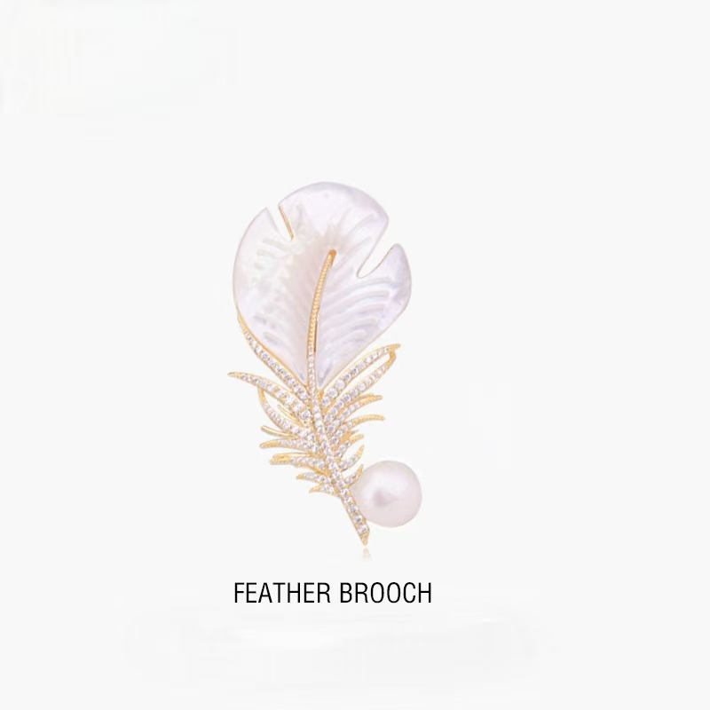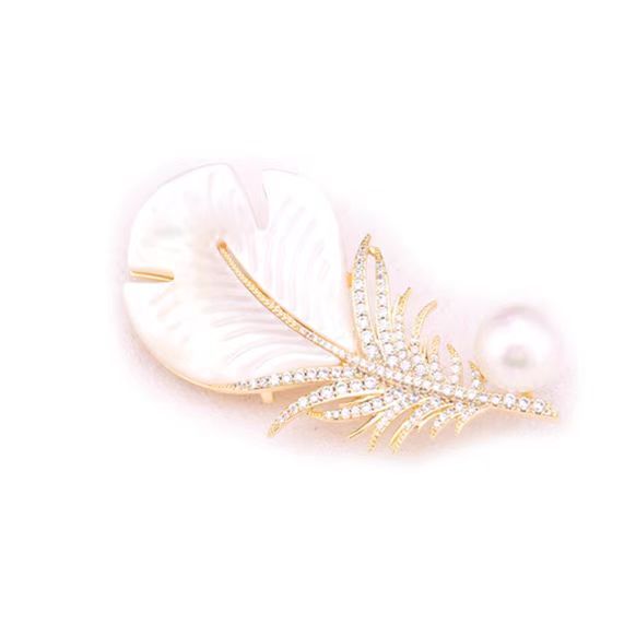 Elfindo- 039 Bros Mutiara Mewah / Bros Bulu Elegent Ringan Ukiran Bulu Fashion Style Brooch
