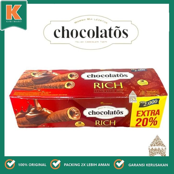 Chocolatos Rich Coated Wafer Roll Wafer Cokelat Full Isi Coklat isi 12 Pcs / KINIMART / PARCEL PAKET KUE HAMPERS / GROSI