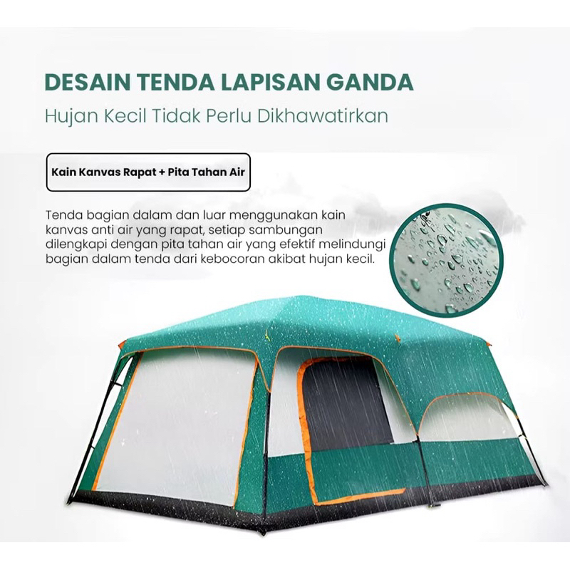 Tenda Camping Jumbo Tenda Outdoor Ada 2 Kamar Tidur Dan 1 Ruang Tamu Waterproof Luxury Automatic