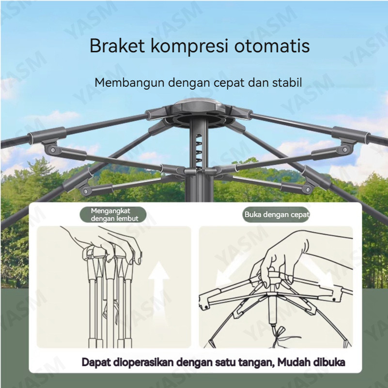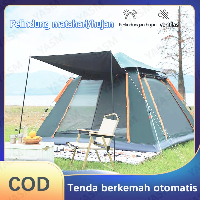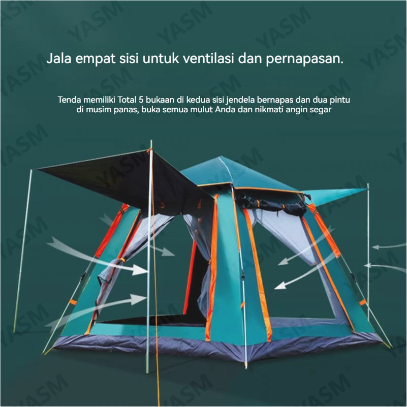 Tenda Camping Kapasitas Luas 5-8 Orang Perlindungan UV Tenda Lipat Otomatis Dengan Jendela 4 Sisi