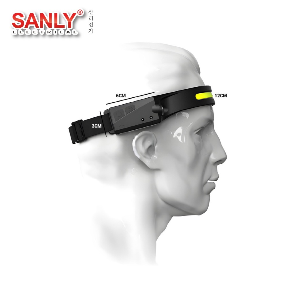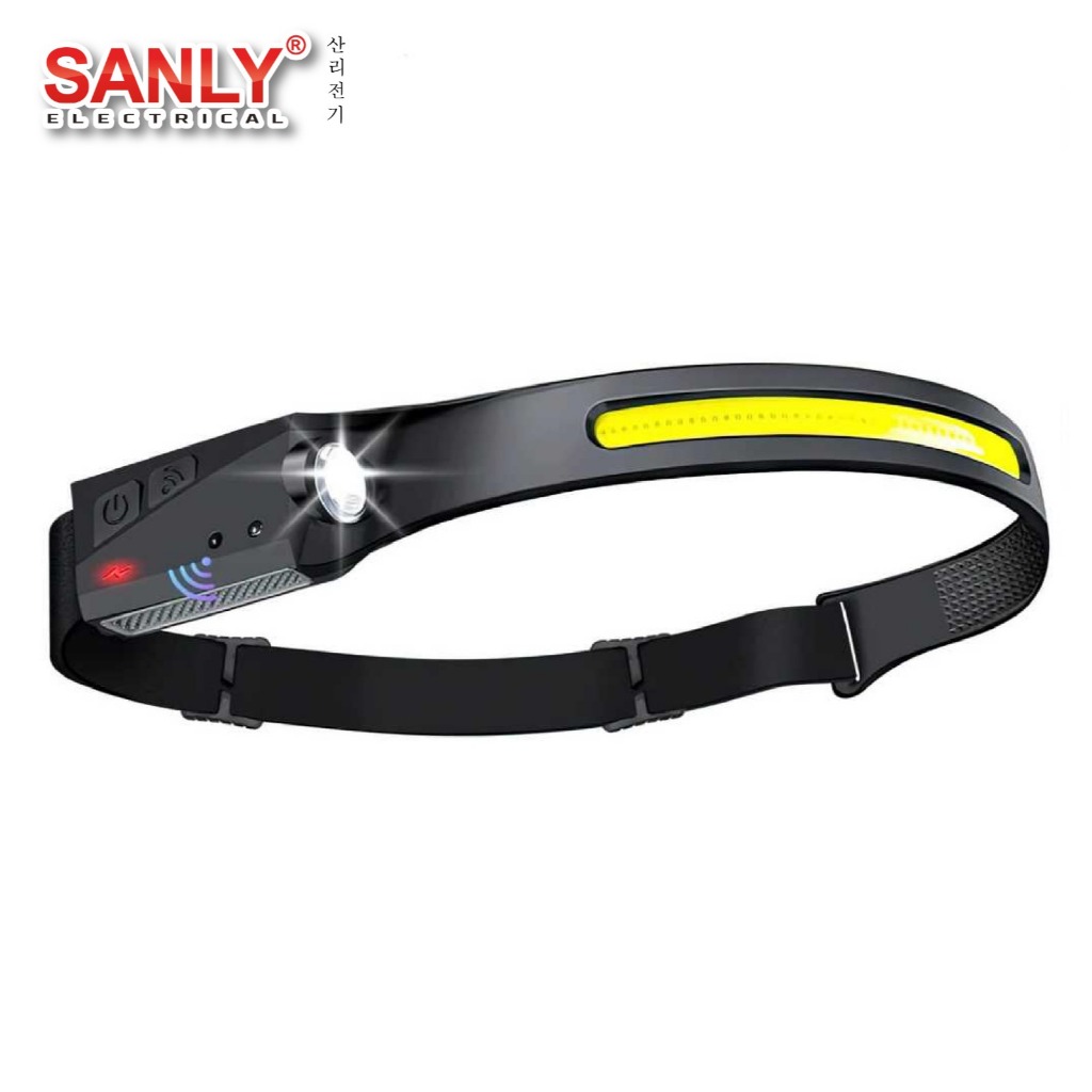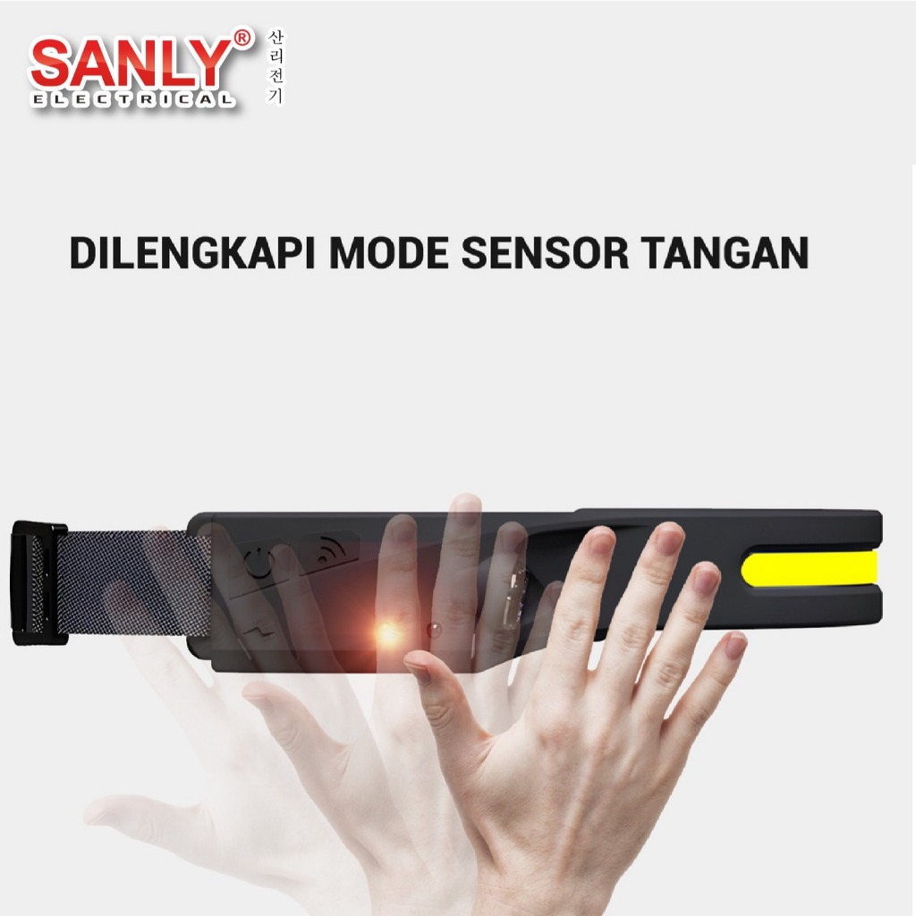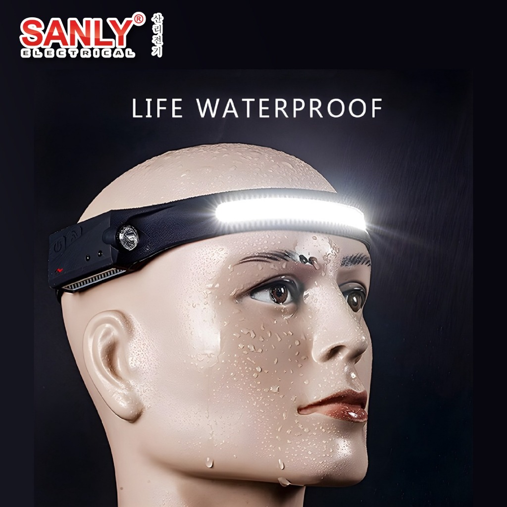 Senter Kepala Super Terang Headlamp LED 4 Mode Cahaya COB Sensor Wave