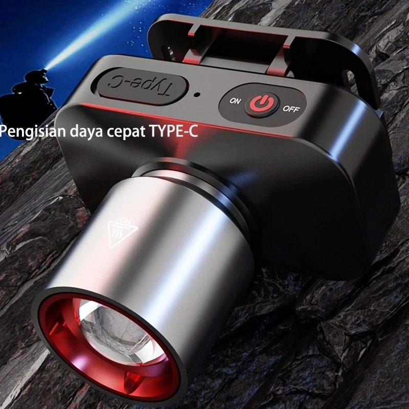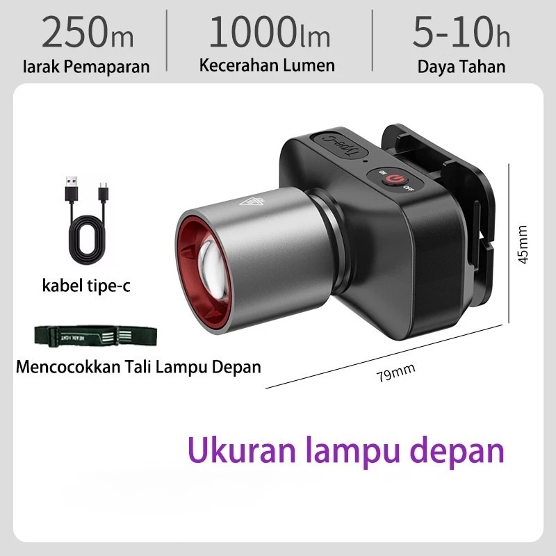 HEADLAMP LAMPU SENTER KEPALA SUPER TERANG BISA DI ZOOM LED IP65 USB WATERPROOF / Senter Kepala Super Terang
