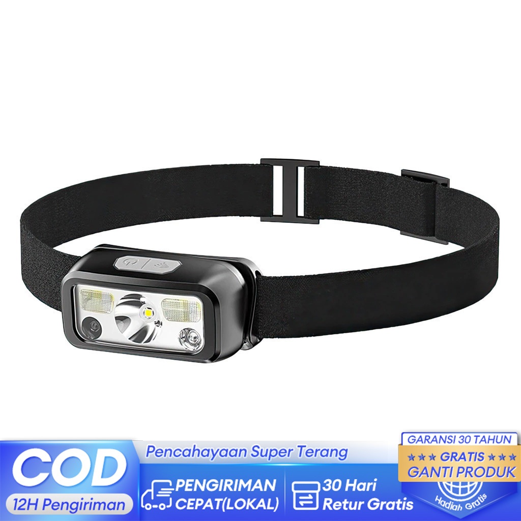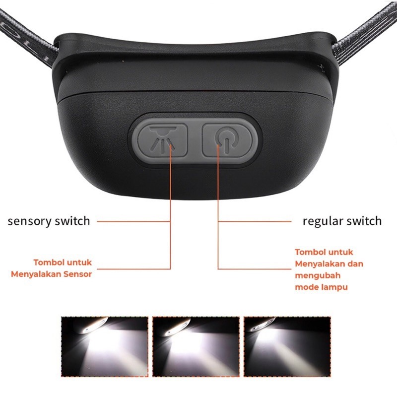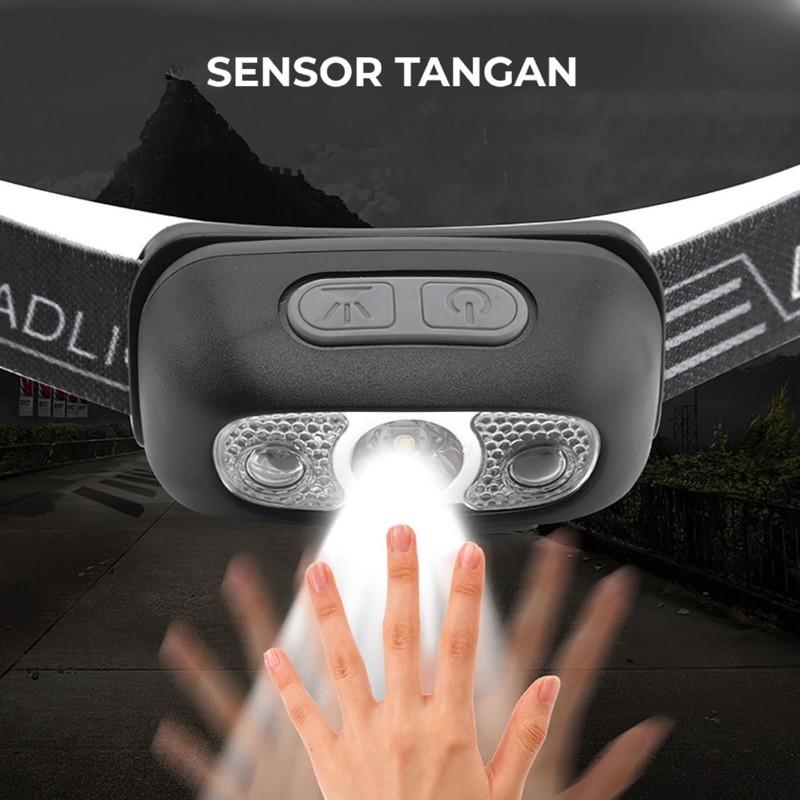 Ready Stock Headlamp Sensor lampu Kepala Camping Senter Cas Headlight LED USB