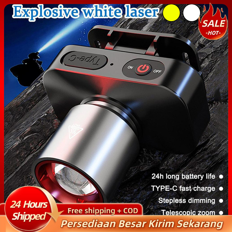 Senter Kepala Super Terang Headlamp Lampu Zoom Cahaya Maksimal Plus Zoom - Headlamp Led - Cahaya Putih Dan Kuning - Rech