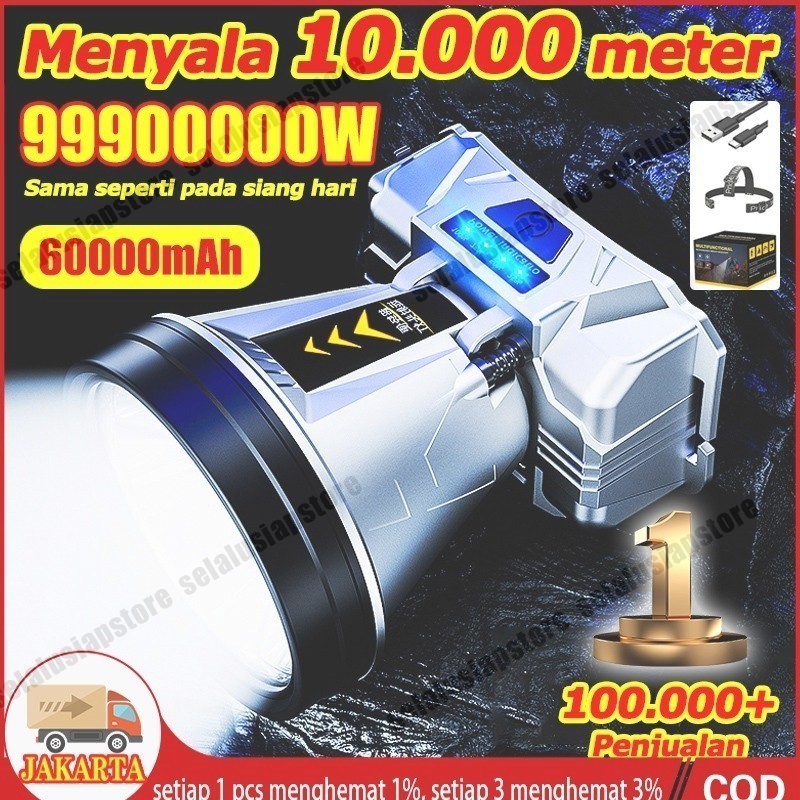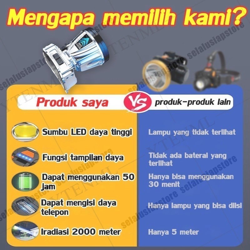 Headlamp outdoor Senter kepala 500 watt super terang cas listrik 1865000mah jarak jauh 900000m 900jam