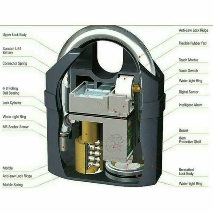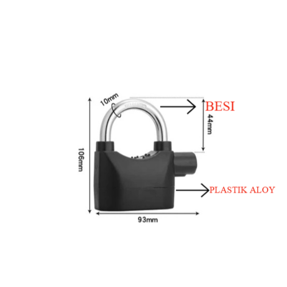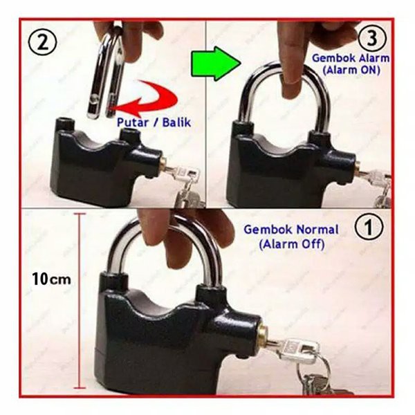 Kunci Gembok Motor Alarm Anti Maling Ring Panjang Pengaman