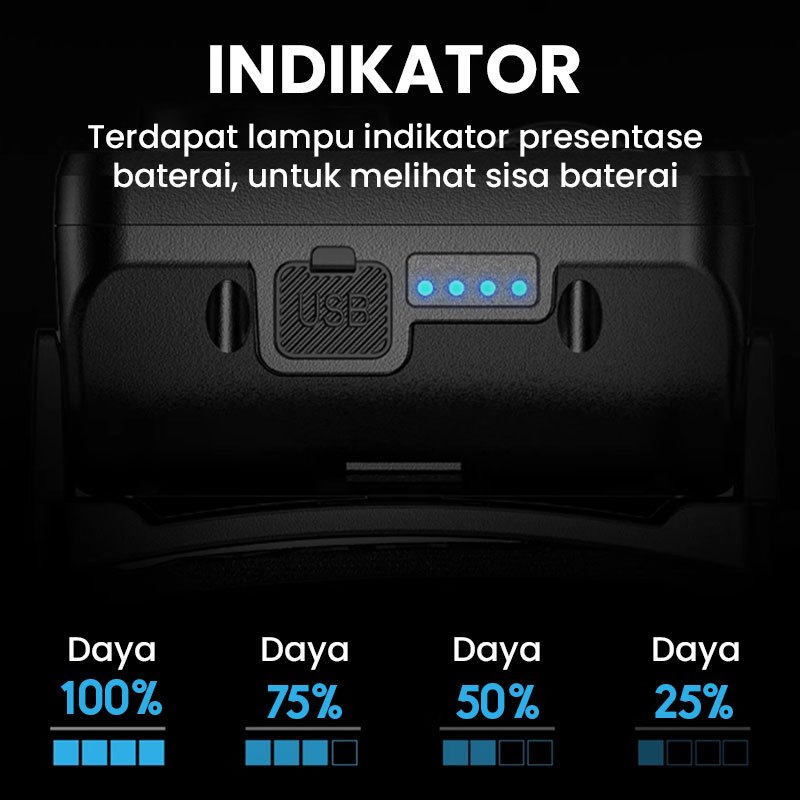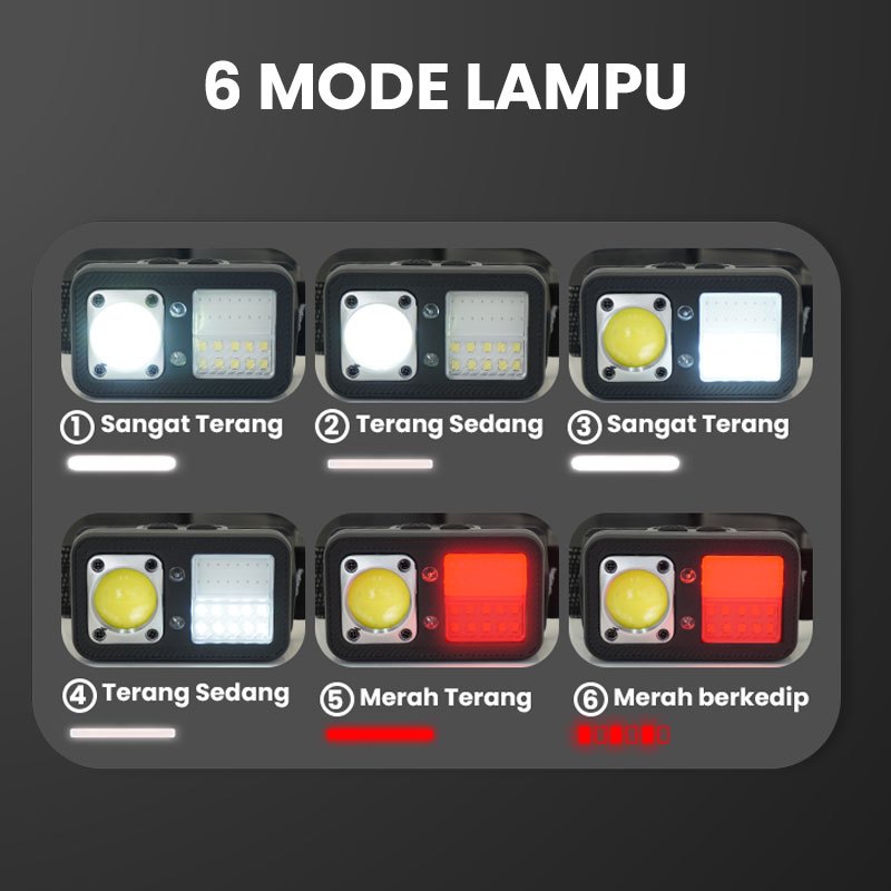 SENTER KEPALA 30W 800LM 6 MODE COB SUPER TERANG SENSOR GERAK LAMPU USB-C WJ01-WJ02
