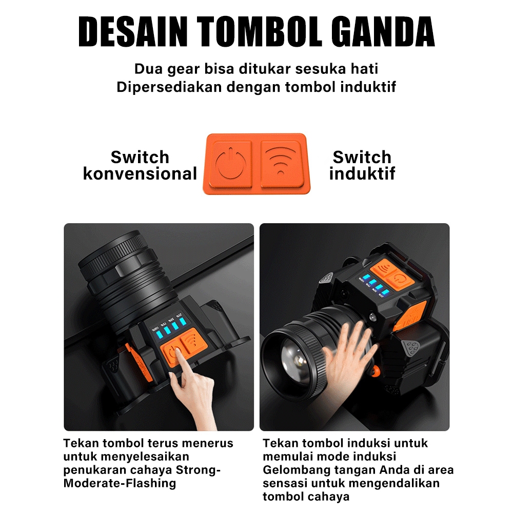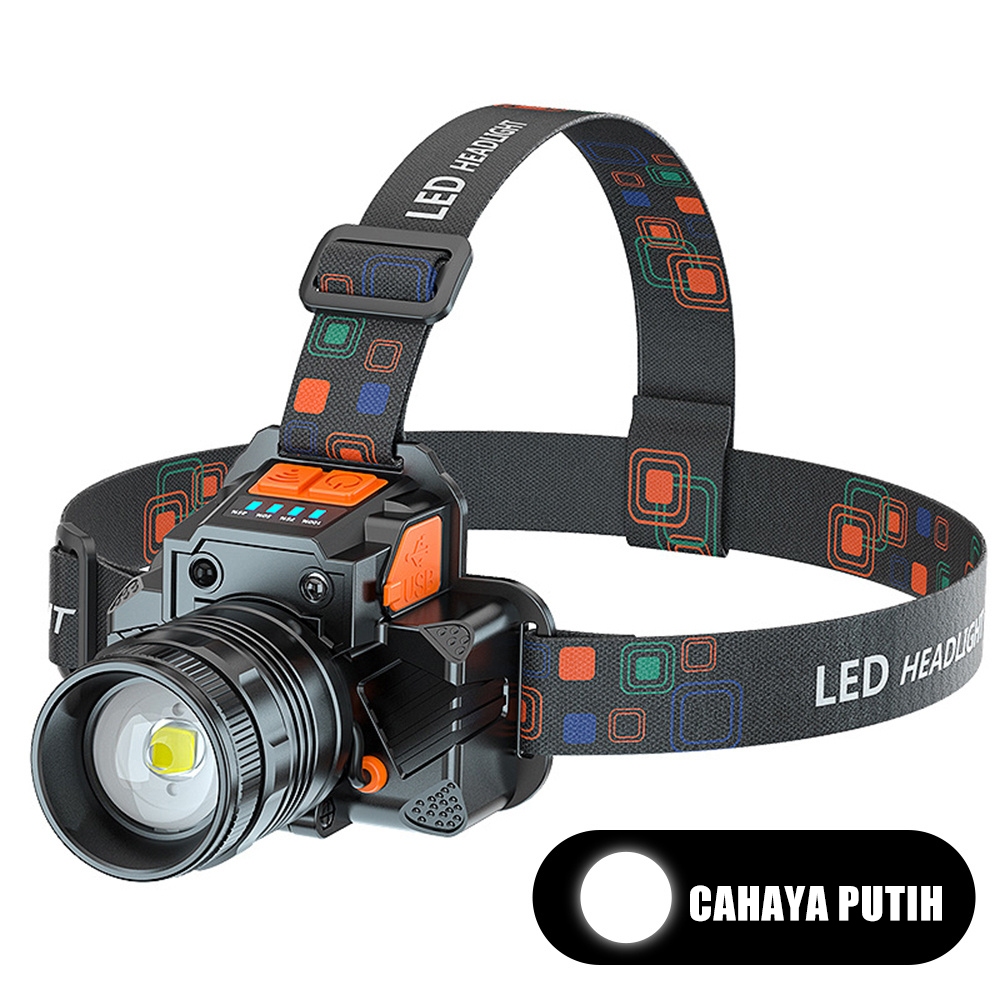 Senter Kepala Led Sorot Super Terang Jarak Jauh Headlamp T8 Zoom Led Outdoor Waterproof/Senter Kepala Led /Lampu Depan T