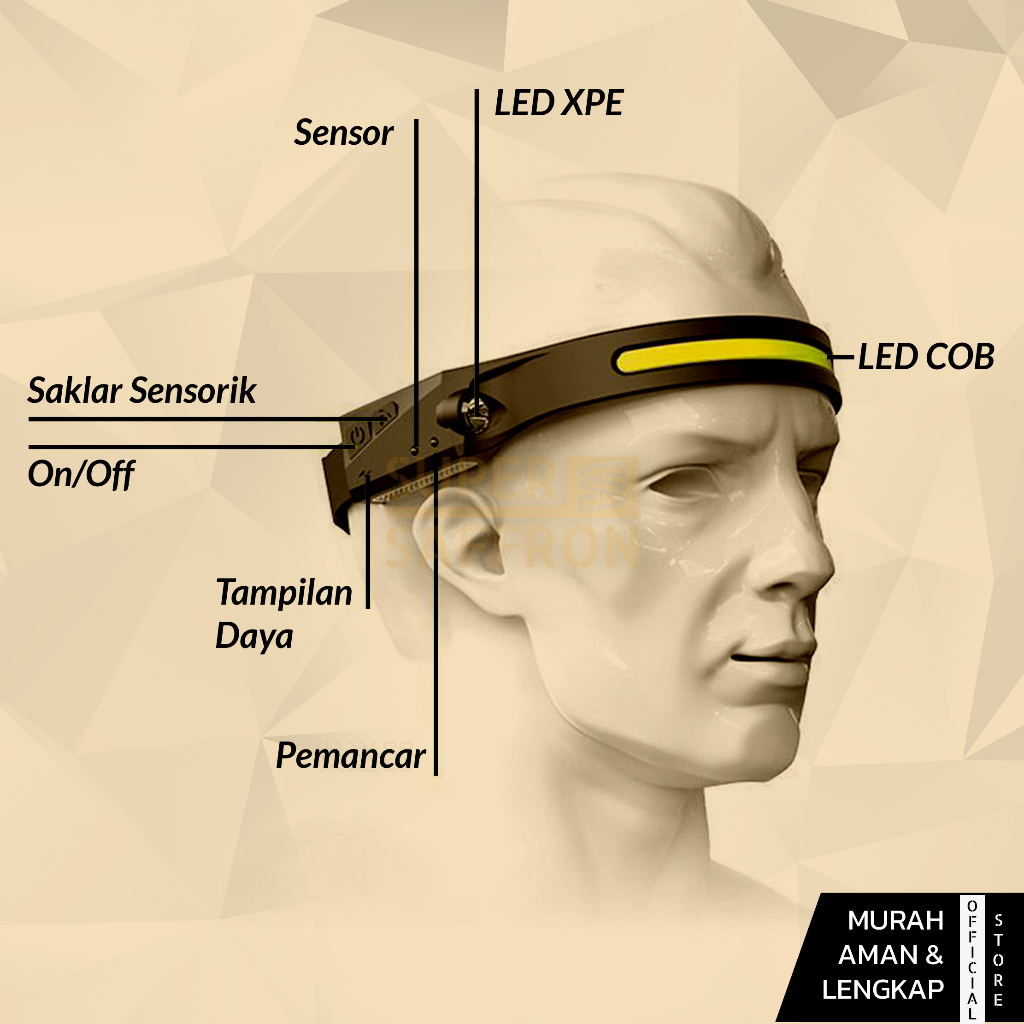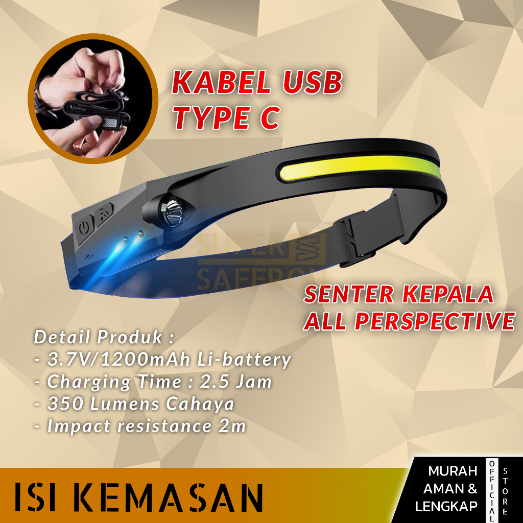 Senter Kepala Seluruh Perspektif COB XPE Sensor Wave IPX4 Waterproof