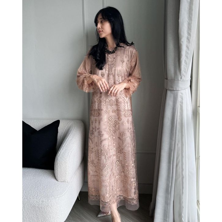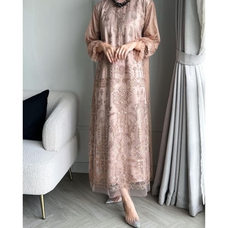 Rora Dress Silk Brukat Chantily Gamis Bridesmaid Terbaru 2025 Gaun Kondangan Muslimah Simple Mewah