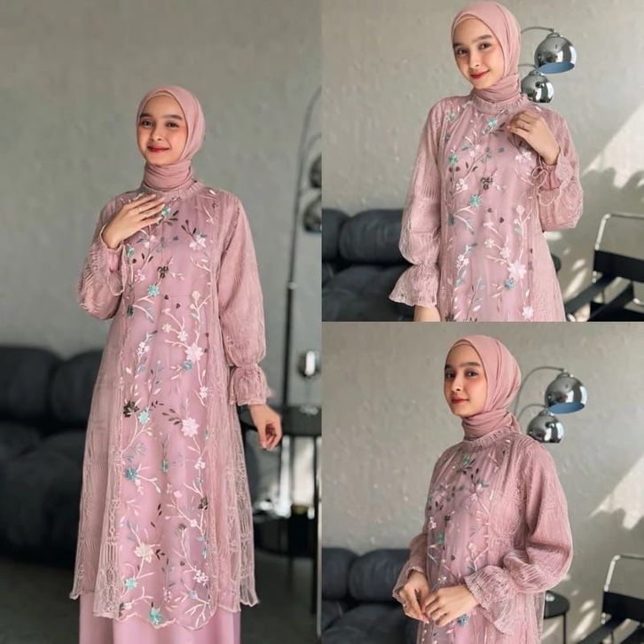 Zeya Dress Pesta Brukat Tille Premium Lebaran Gamis Pesta Mewah Dress Tulle Garden Mix Chantily Dress Kondangan Jumbo