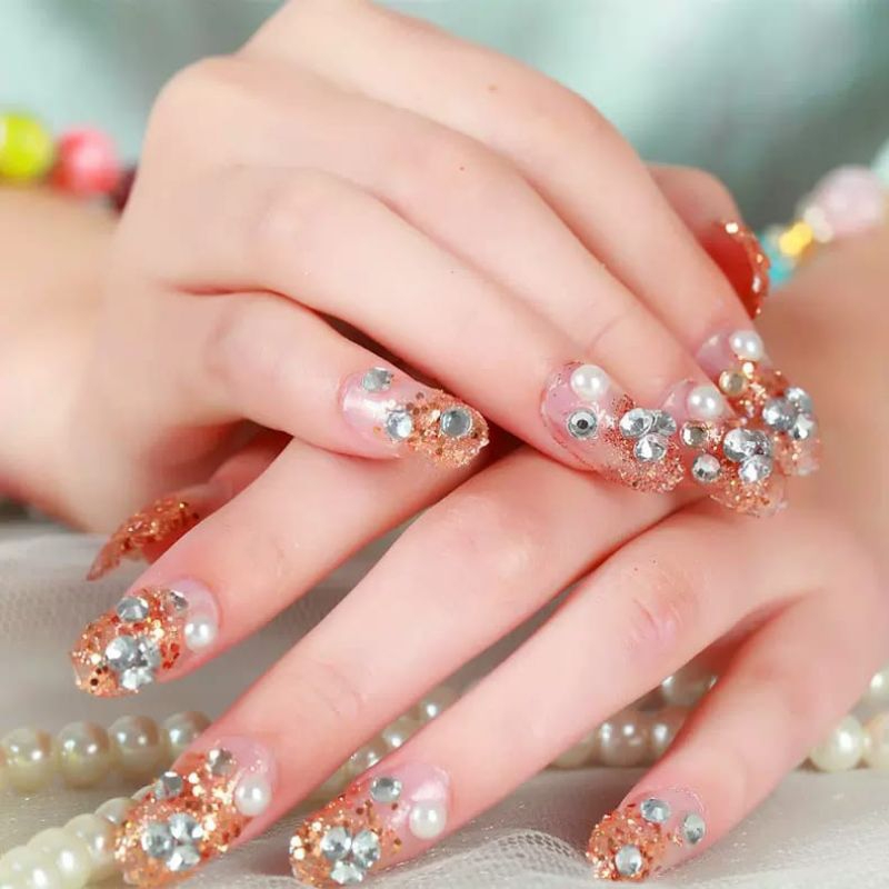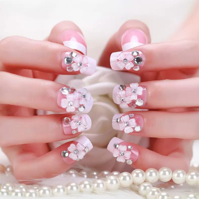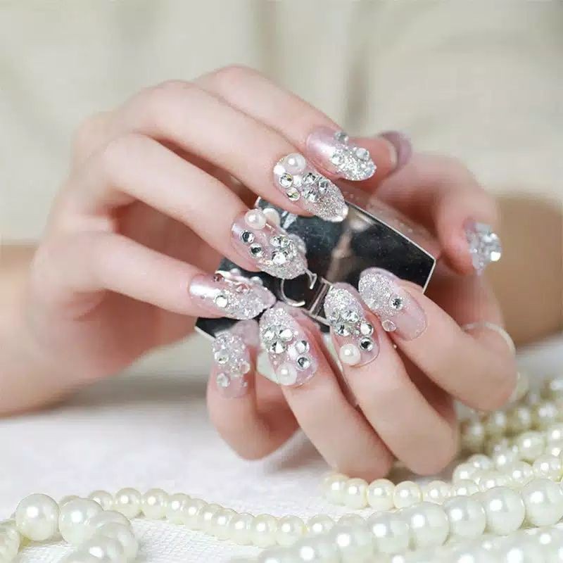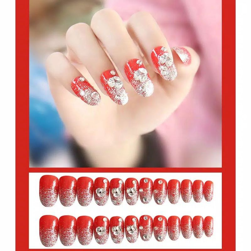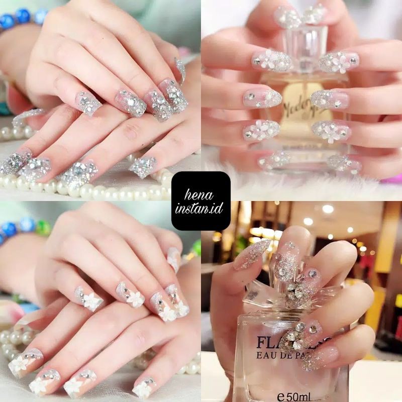 24 PCS WEDDING FAKE NAILS 3D / KUKU PALSU PENGANTIN / FREE LEM DIBALIK KUKU TINGGAL TEMPEL