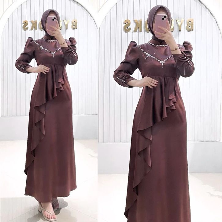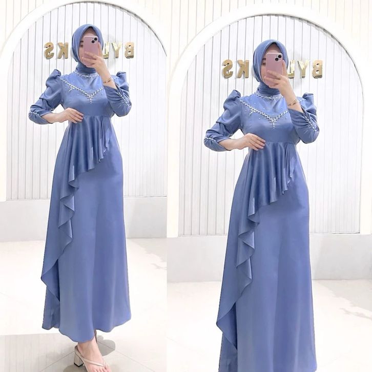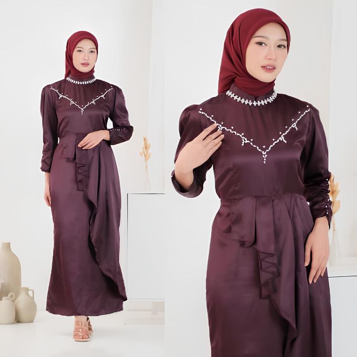 Kharisma Dress Wisuda Wanita Kekinian Gamis Satin Terbaru 2025 Dress Pesta Wanita Elegan Party Dress