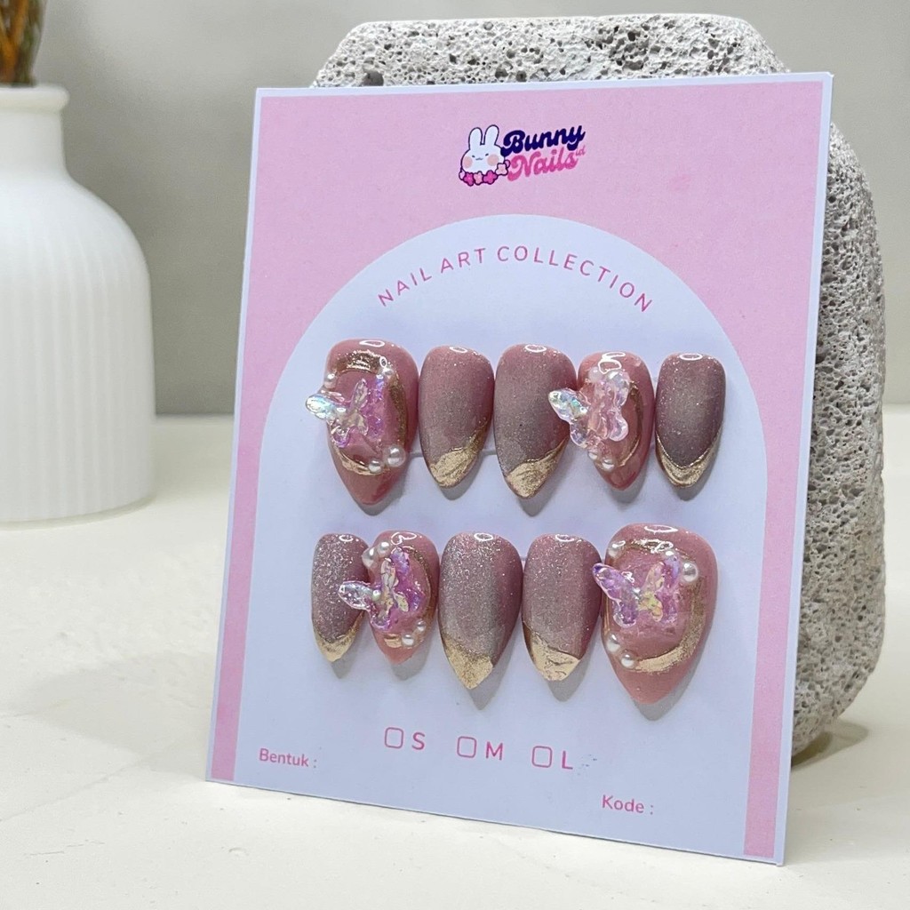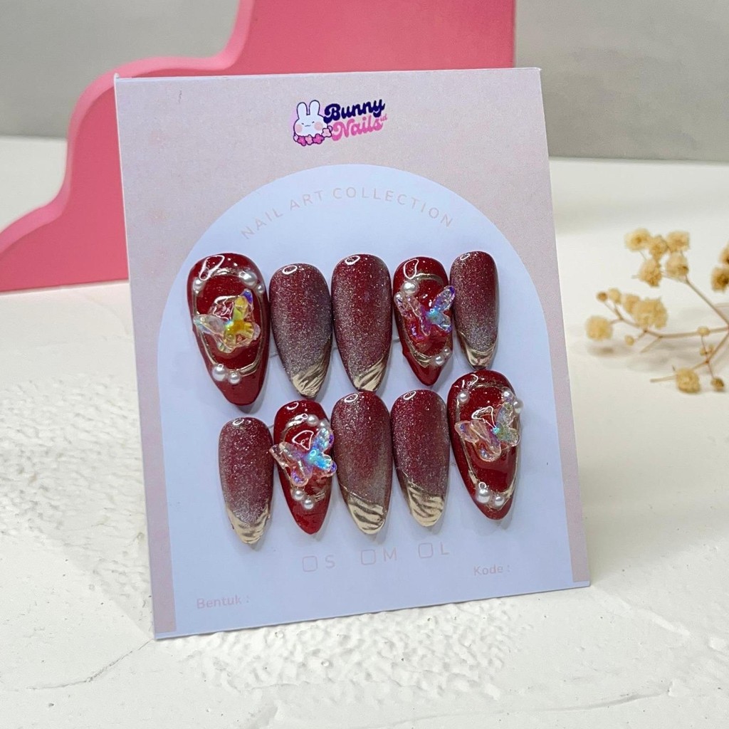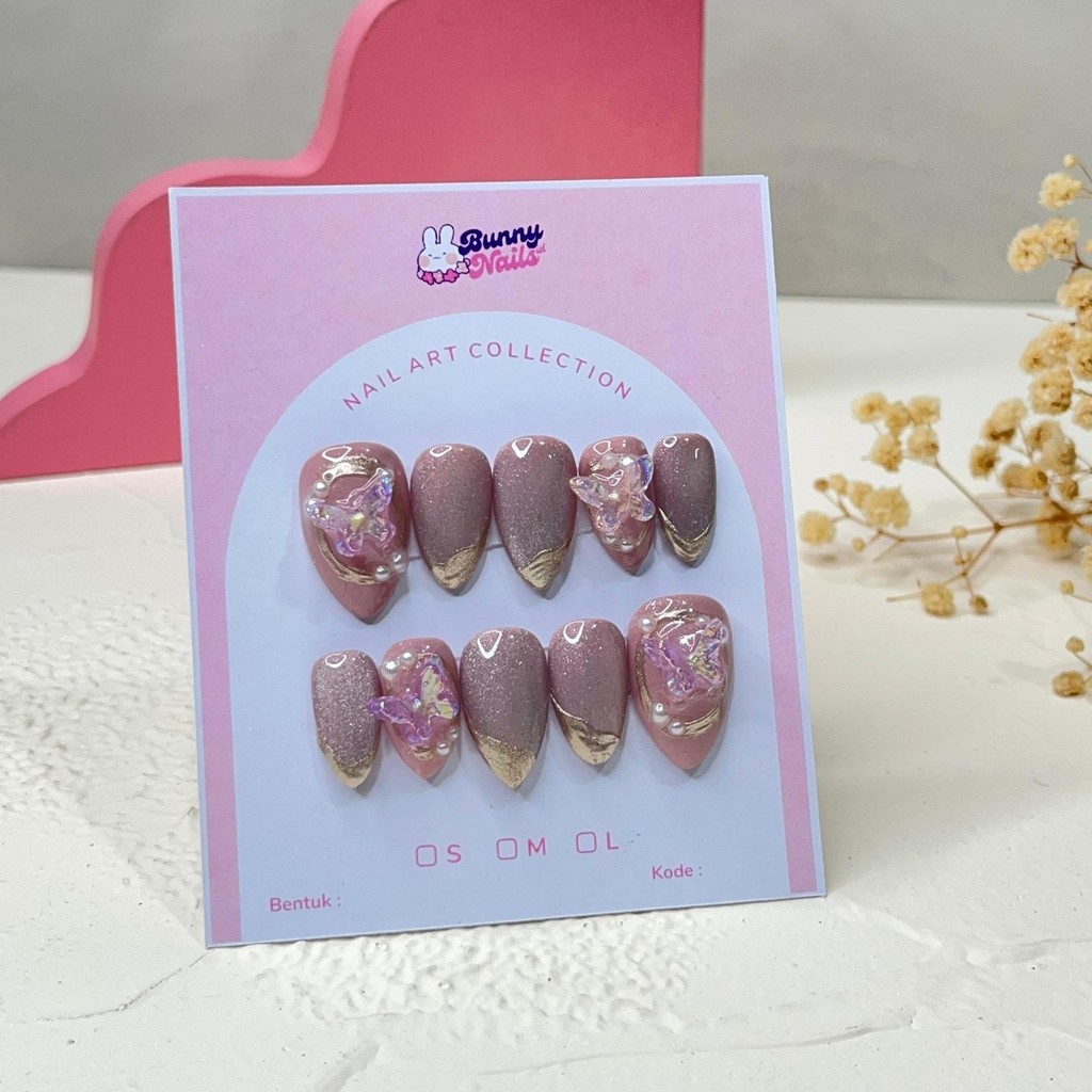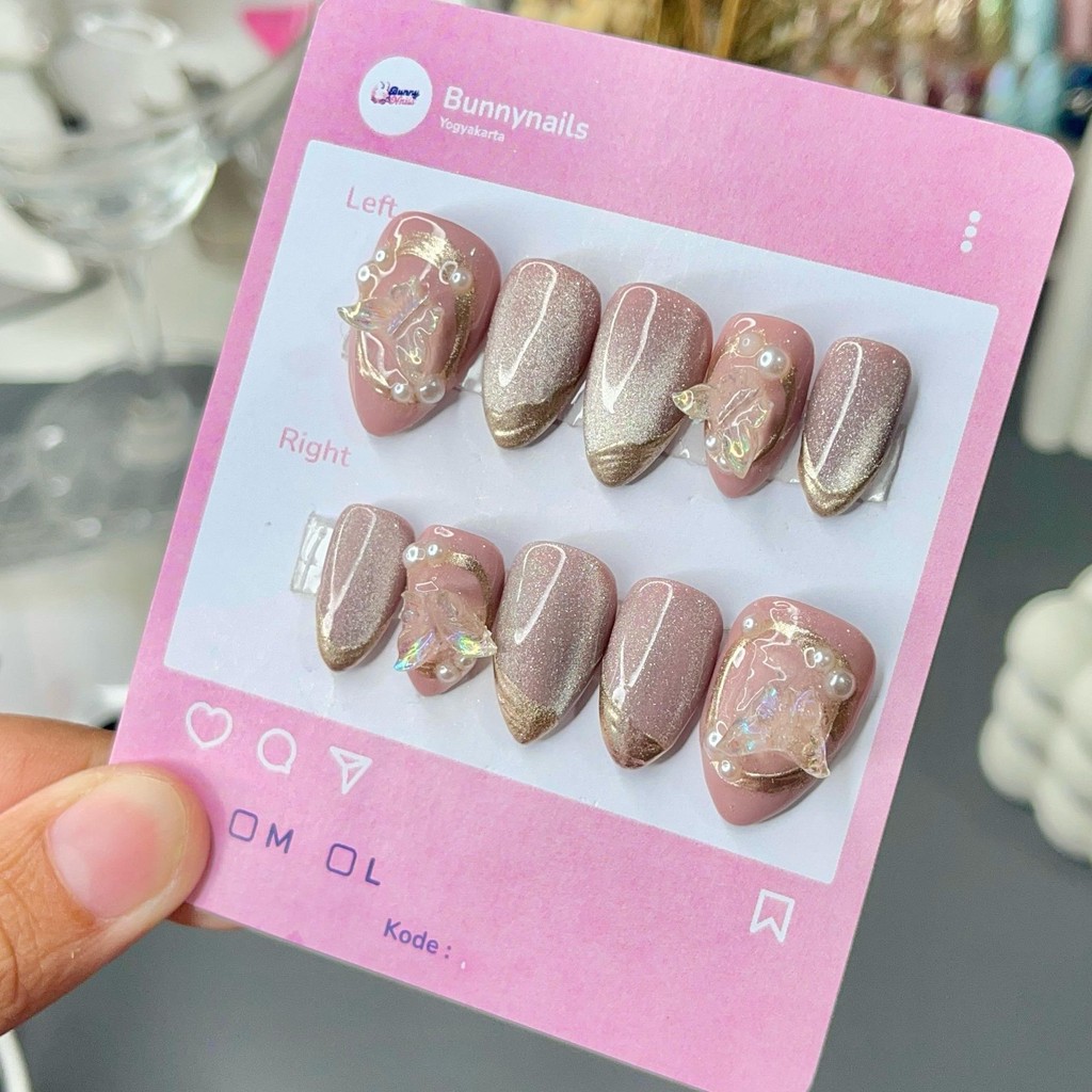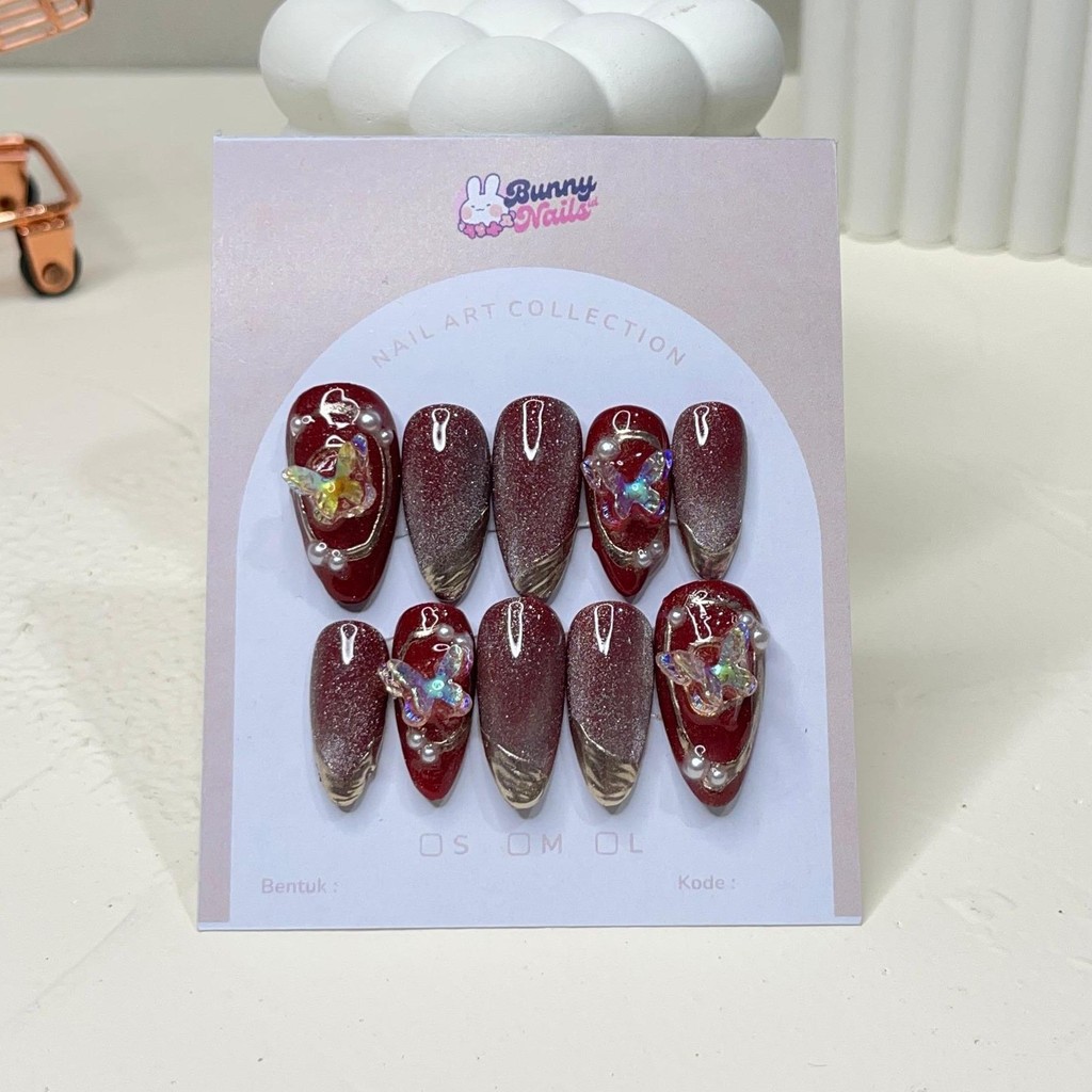 DV 01 Press On Nails Cat Eye Wedding 3D Nude Maroon Pink Coklat Premium | Kuku Palsu Bunnynailsid