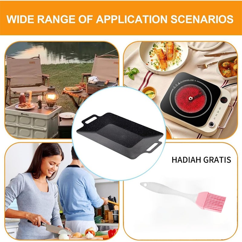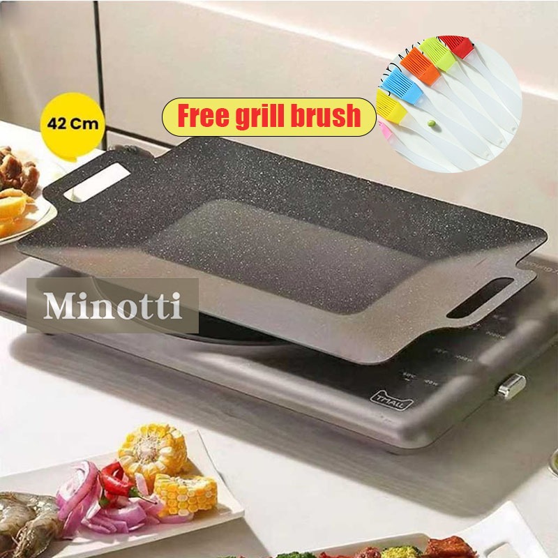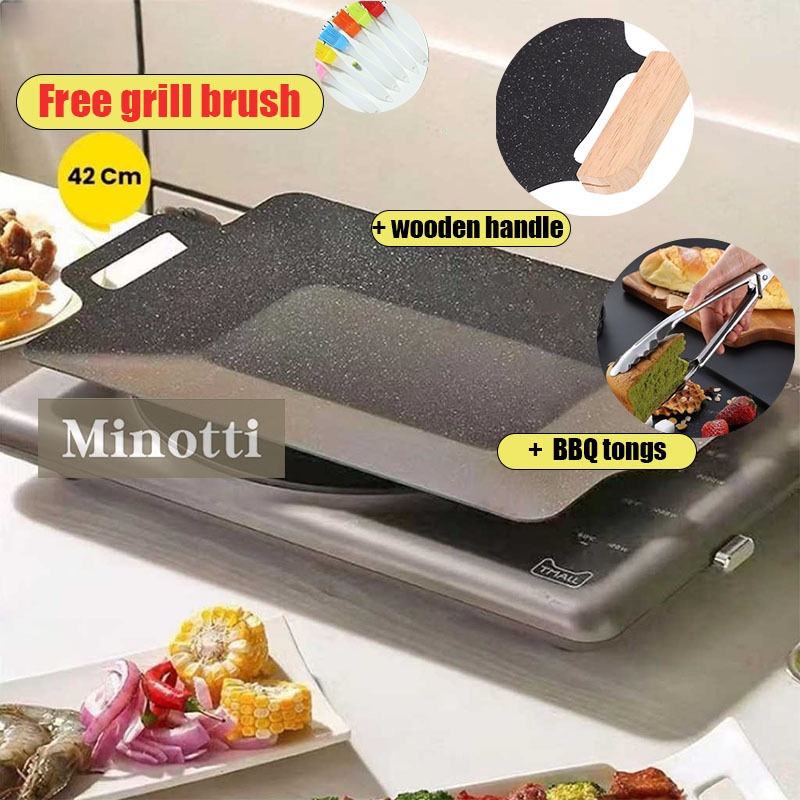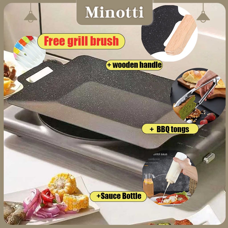 Minotti Korean style BBQ Grill Pan for Stove Wajan Panggangan BBQ Grill Pan 43cm X 27cm Korean Wajan Persegi Anti Lengke
