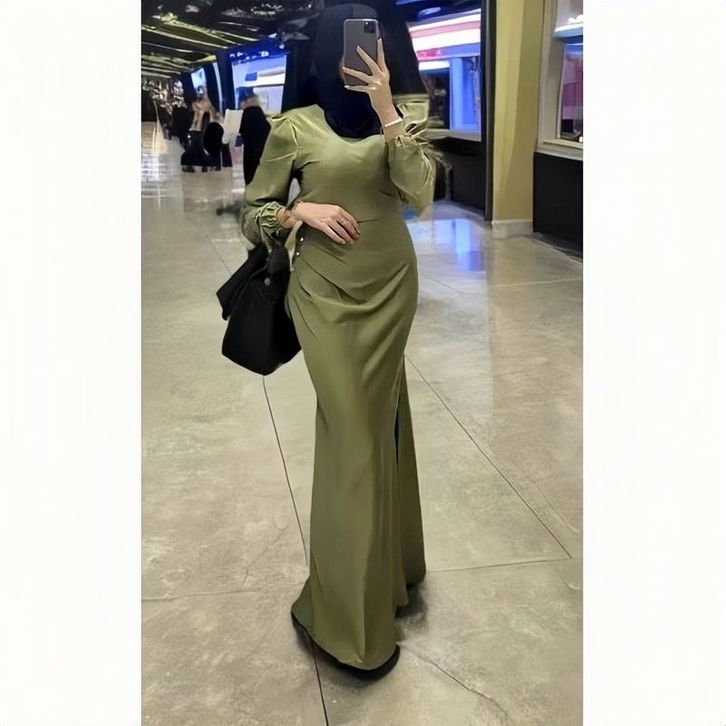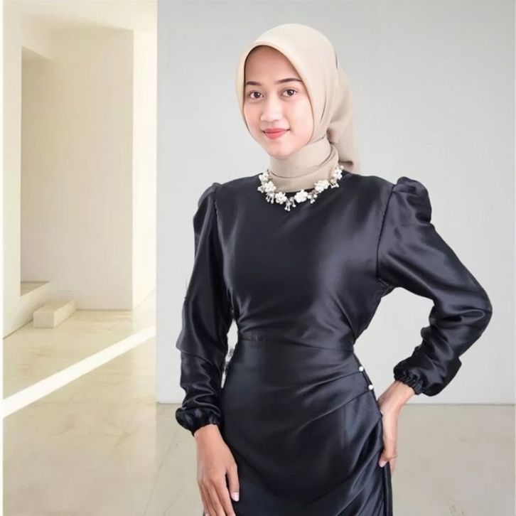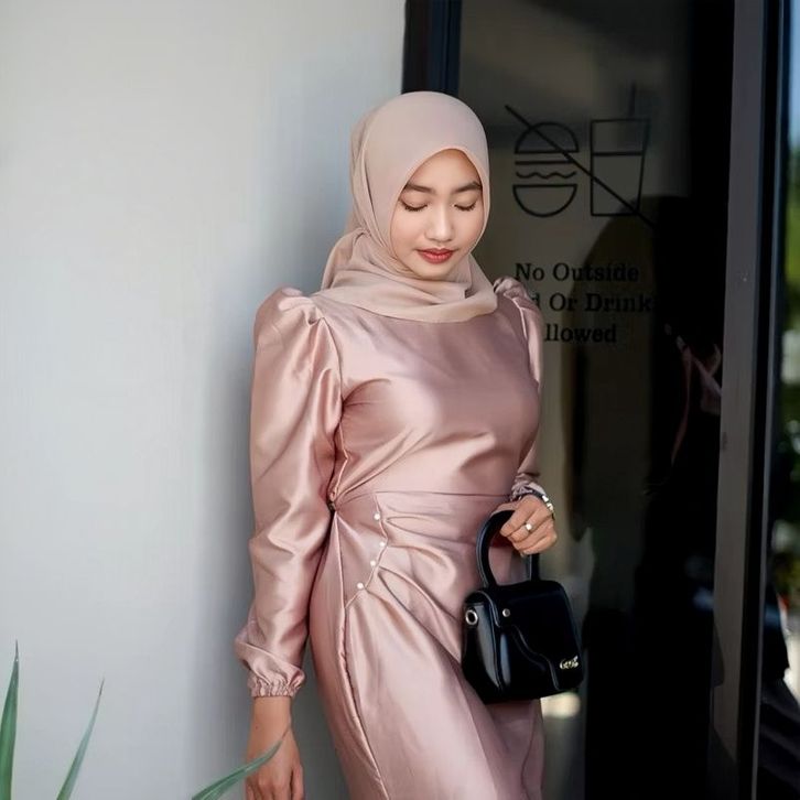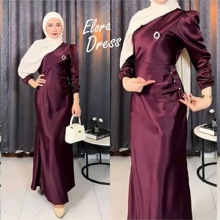 Elora Dress Satin Silk Premium Dress Wanita Kondangan Lamaran Muslim Gamis Body Fit Viral Mermaid 20254