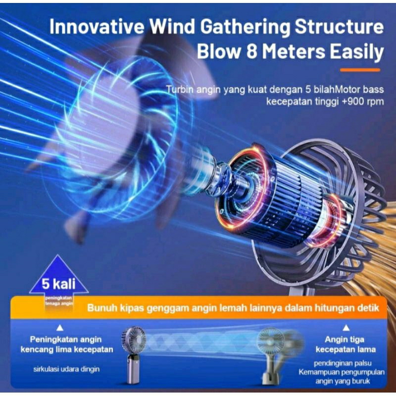 UPHOME Kipas Angin Portable Mini USB 16000 mAh / LED Display Handheld Foldable