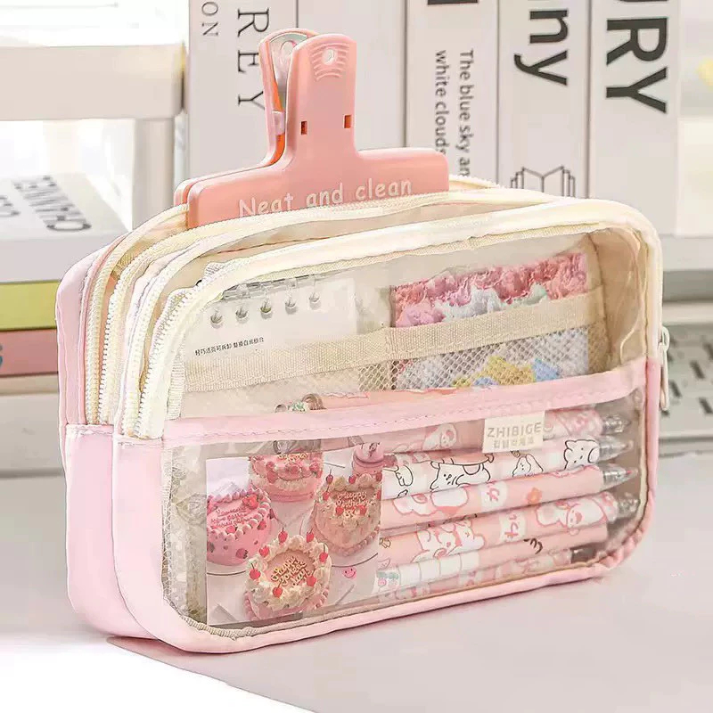 Kotak Pensil Aesthetic Tempat Pensil Transparan Besar Bergaya Korea Pensil Case Tempat Penyimpanan Alat Tulis Sekolah Ae