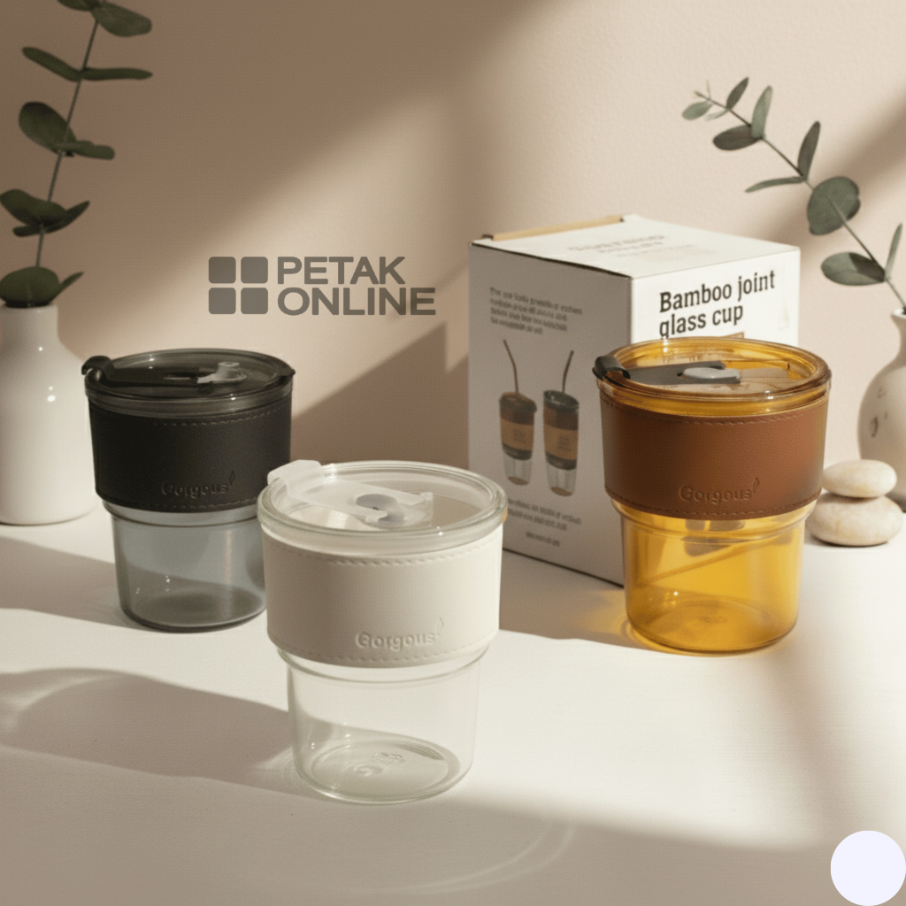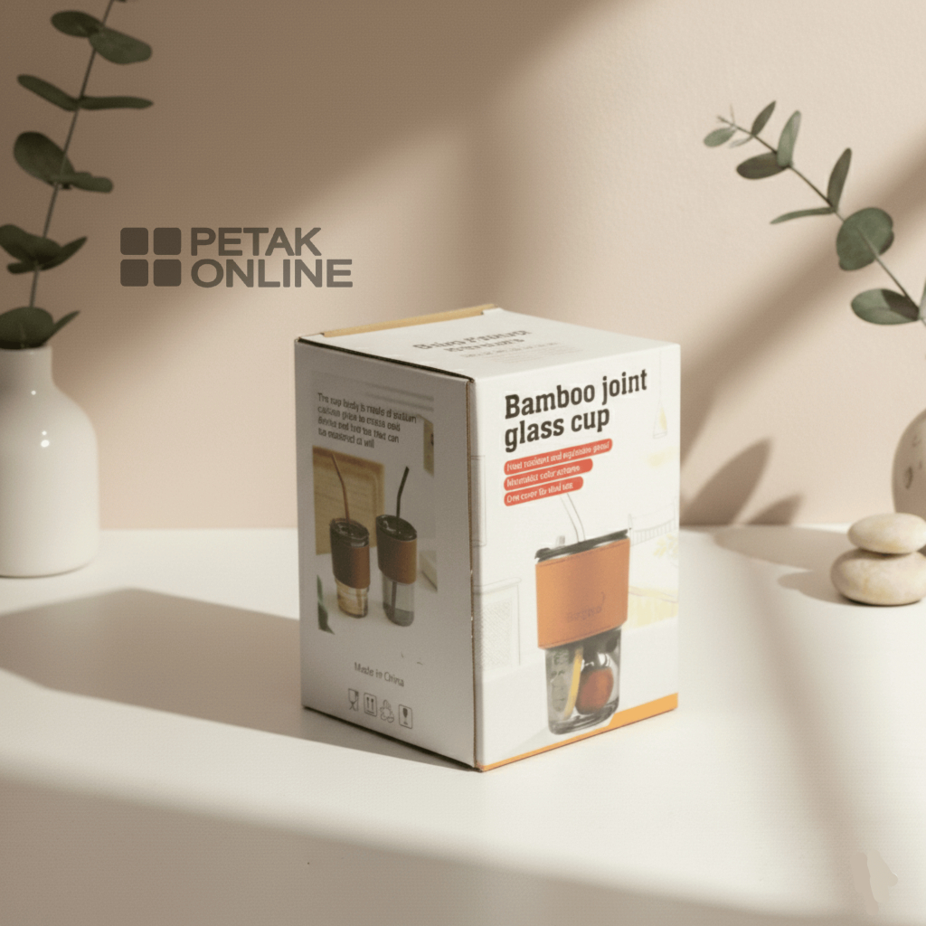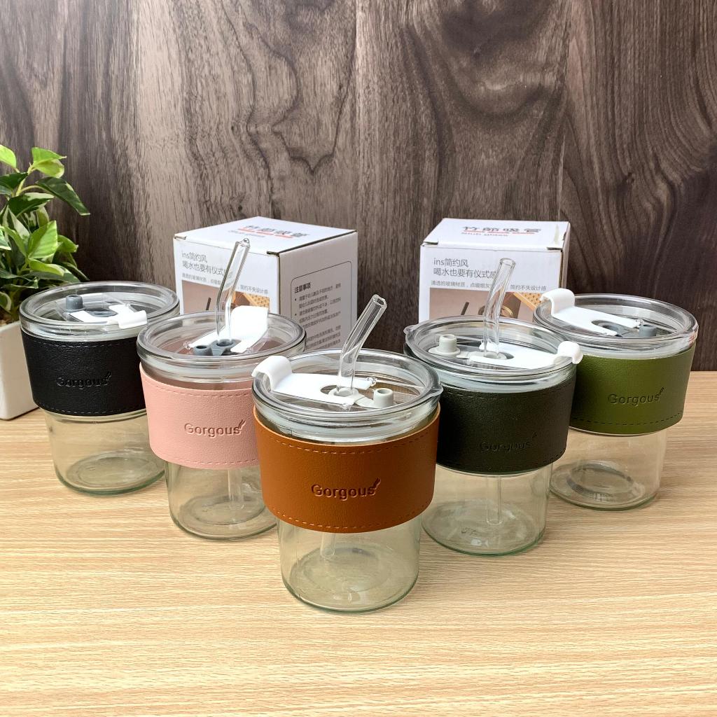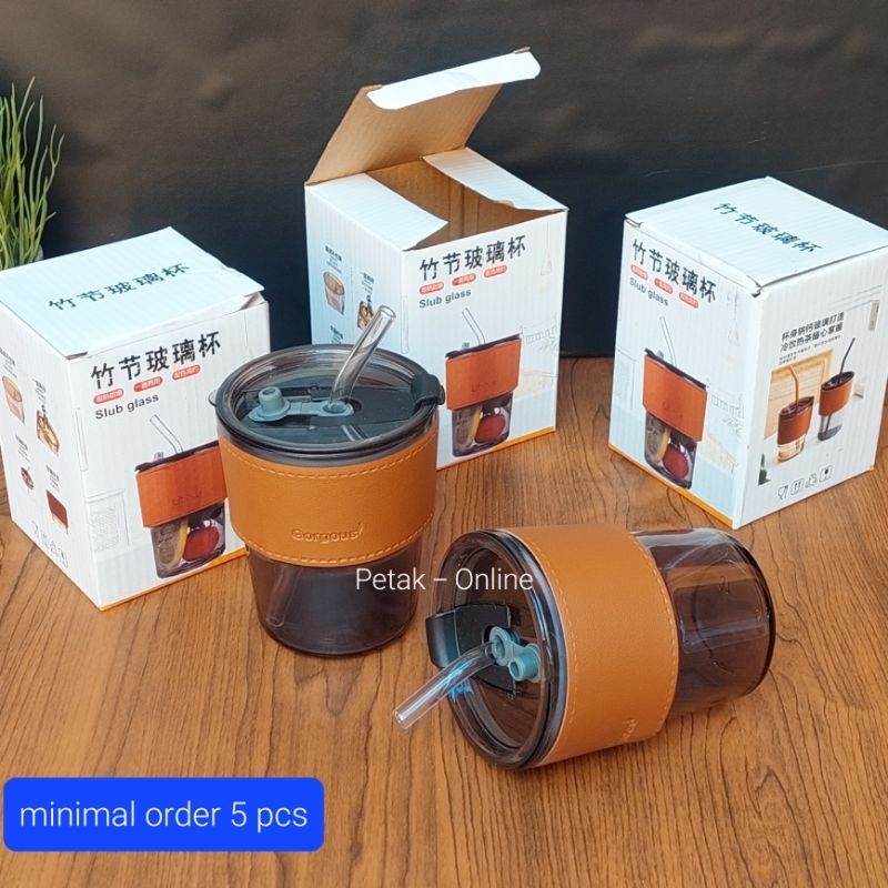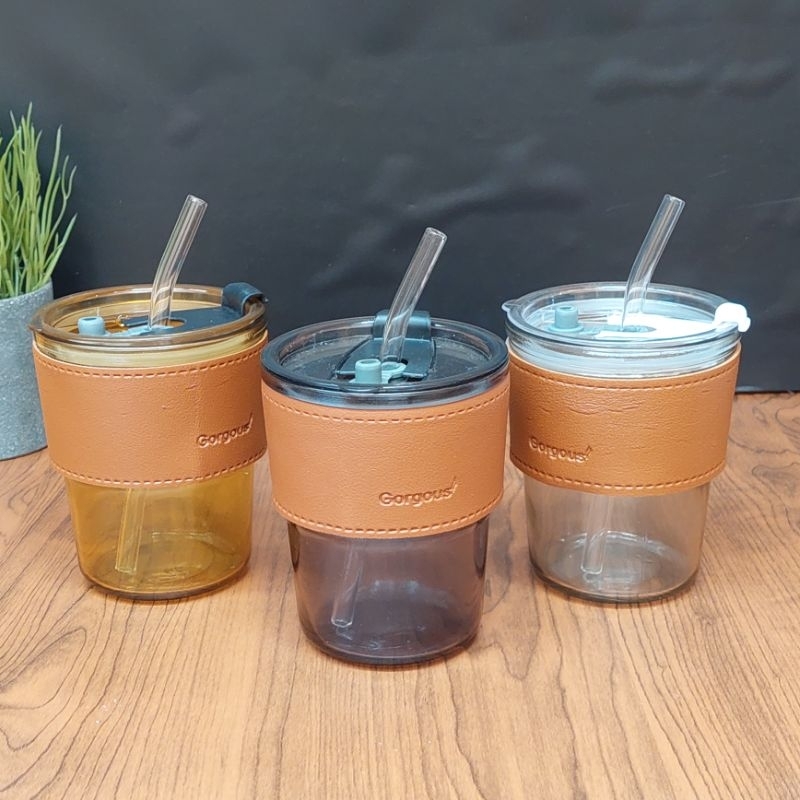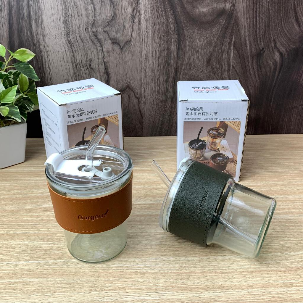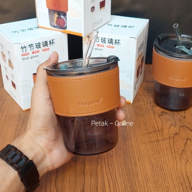 Gelas Kaca Aesthetic Sedotan 420 ml Plus Box