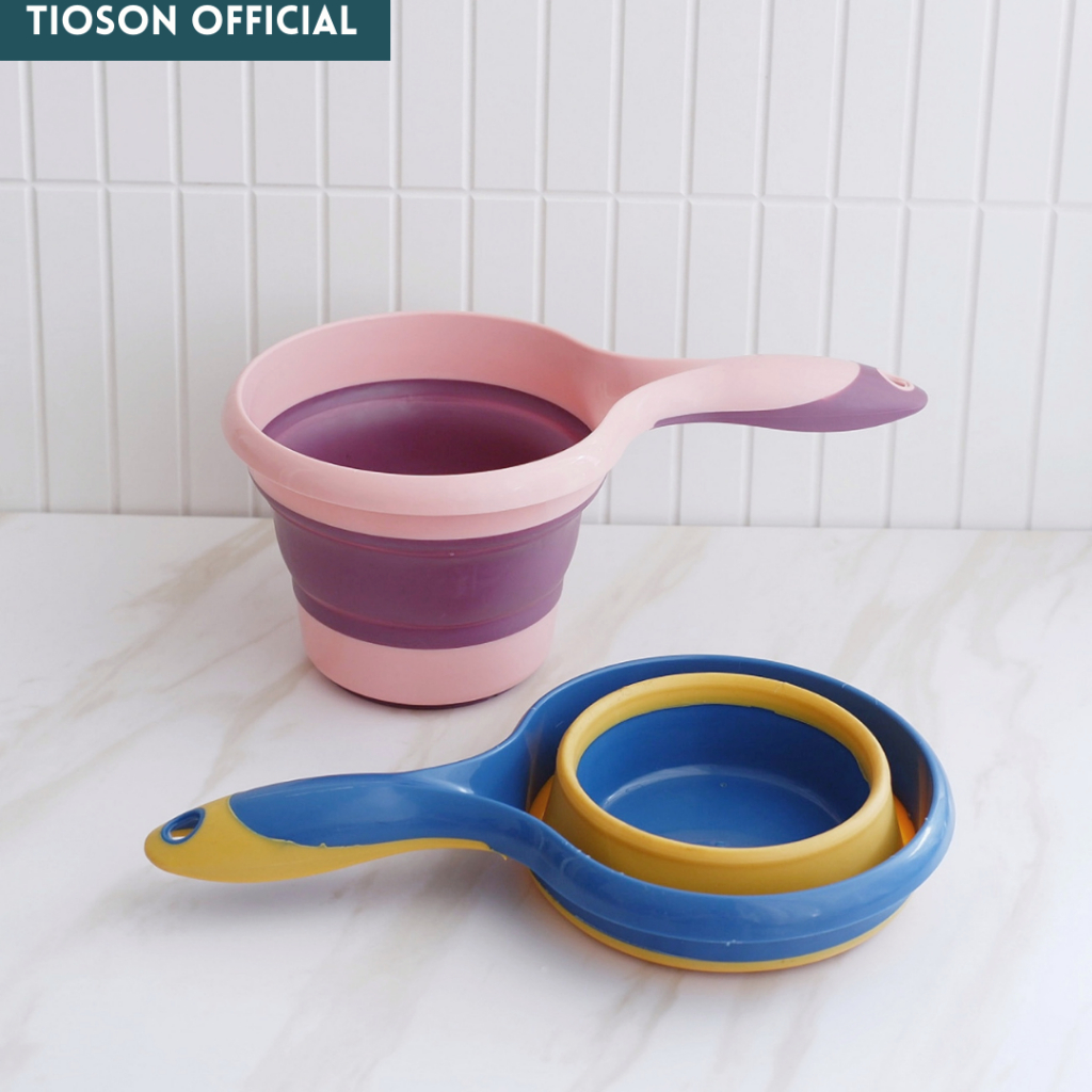 Tioson Gayung lipat silikon portable wadah air mandi serbaa (Zhi)
