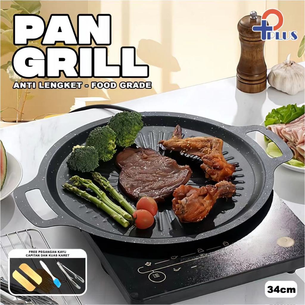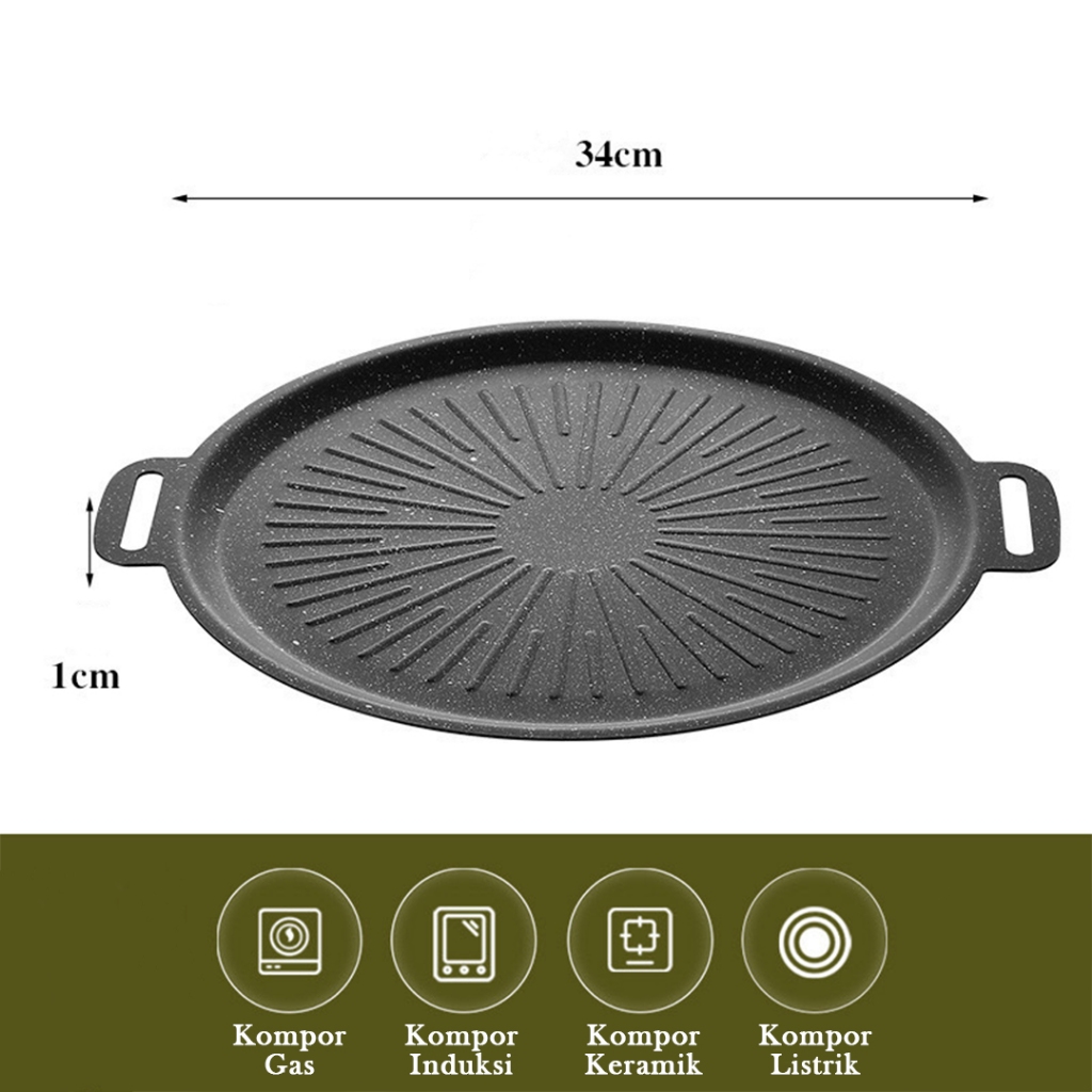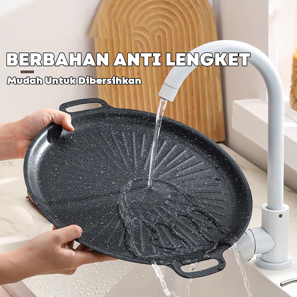 Pan Grill Anti Lengket --Food Grade/Alat Panggang Ala Korea Style Diameter 34CM Mini Barbecue Plate / Grill Pan Set Kore