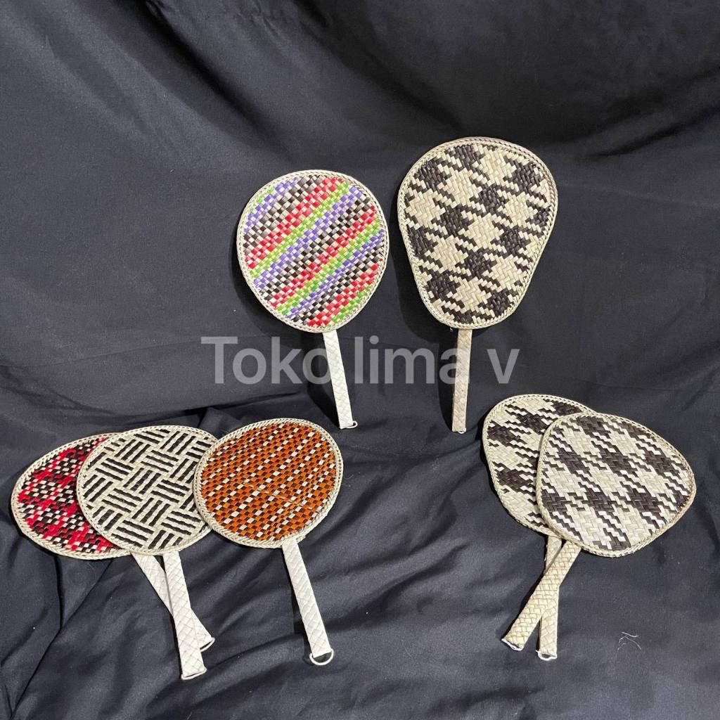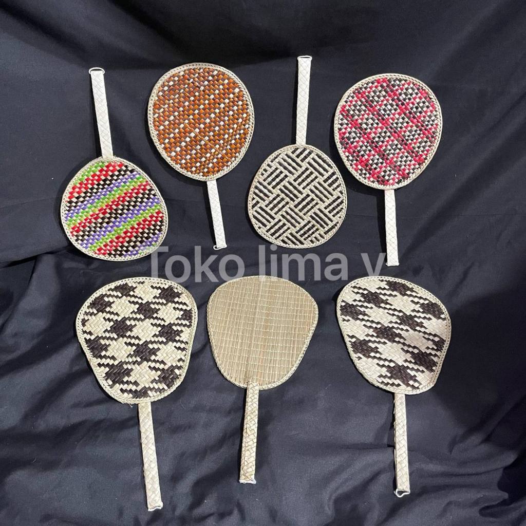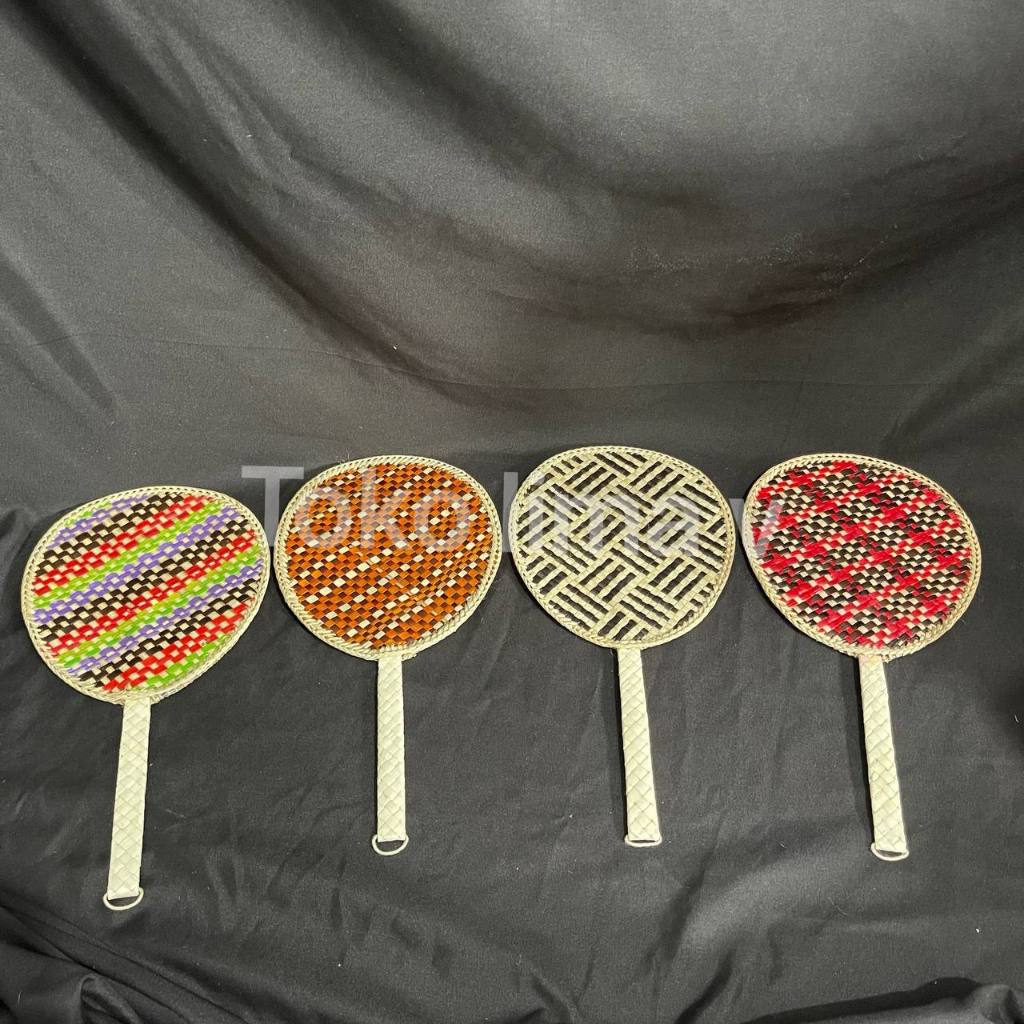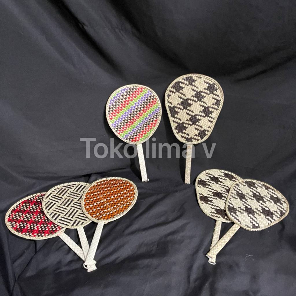 Kipas Hihid Angin Tangan Genggam Bentuk Bulat Lonjong Ayaman Bambu Souvenir Pernikahan