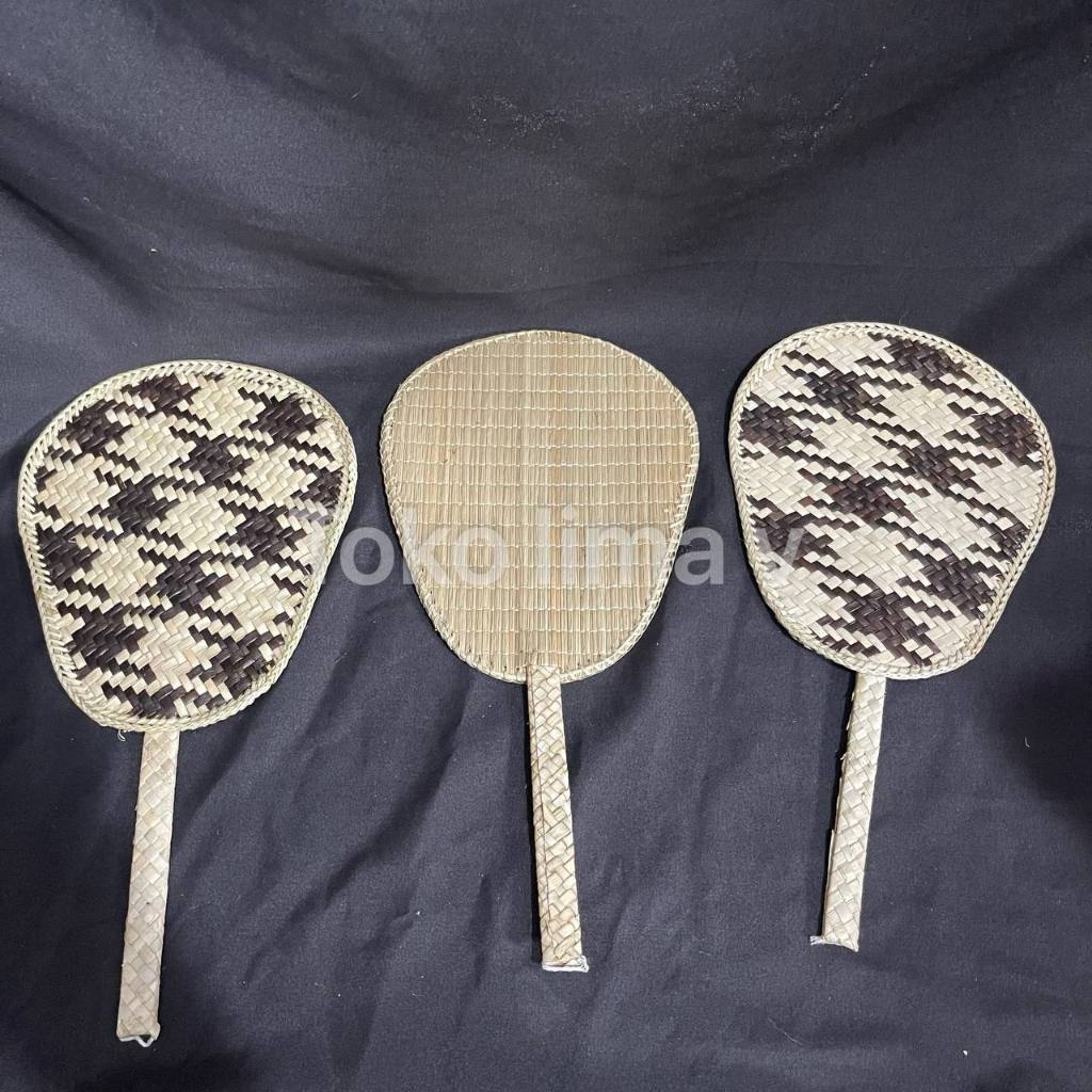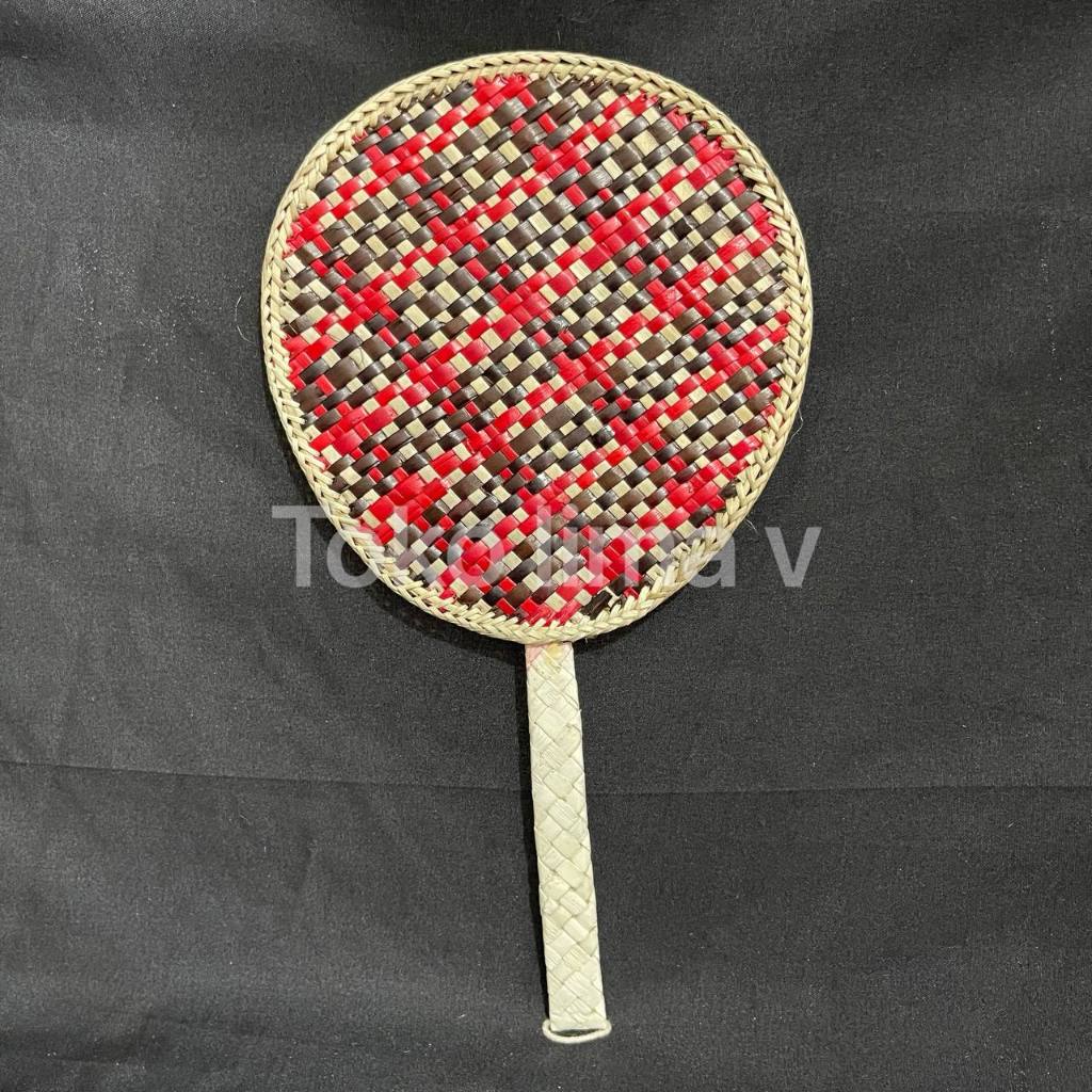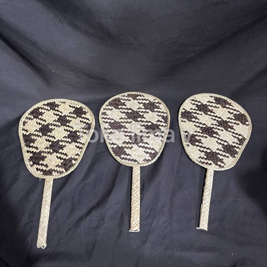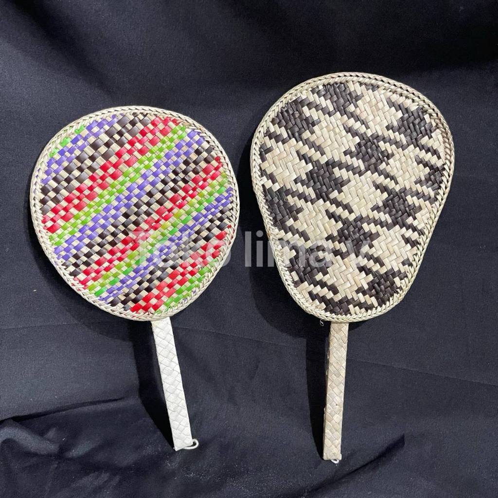 Kipas Hihid Angin Tangan Genggam Bentuk Bulat Lonjong Ayaman Bambu Souvenir Pernikahan