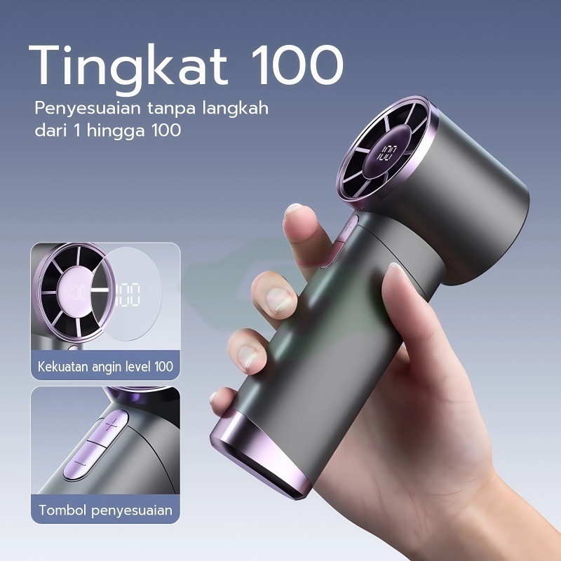 Kipas Genggam Turbo 100 Kecepatan Angin Kipas Berkecepatan Tinggi Kipas Mini Portabel Tampilan LED Digital Kipas Turbo