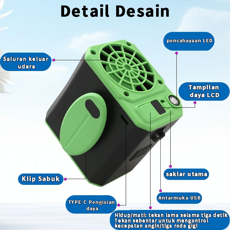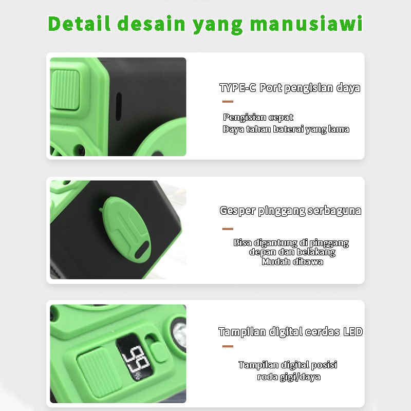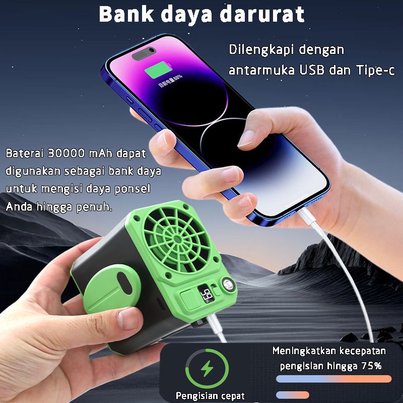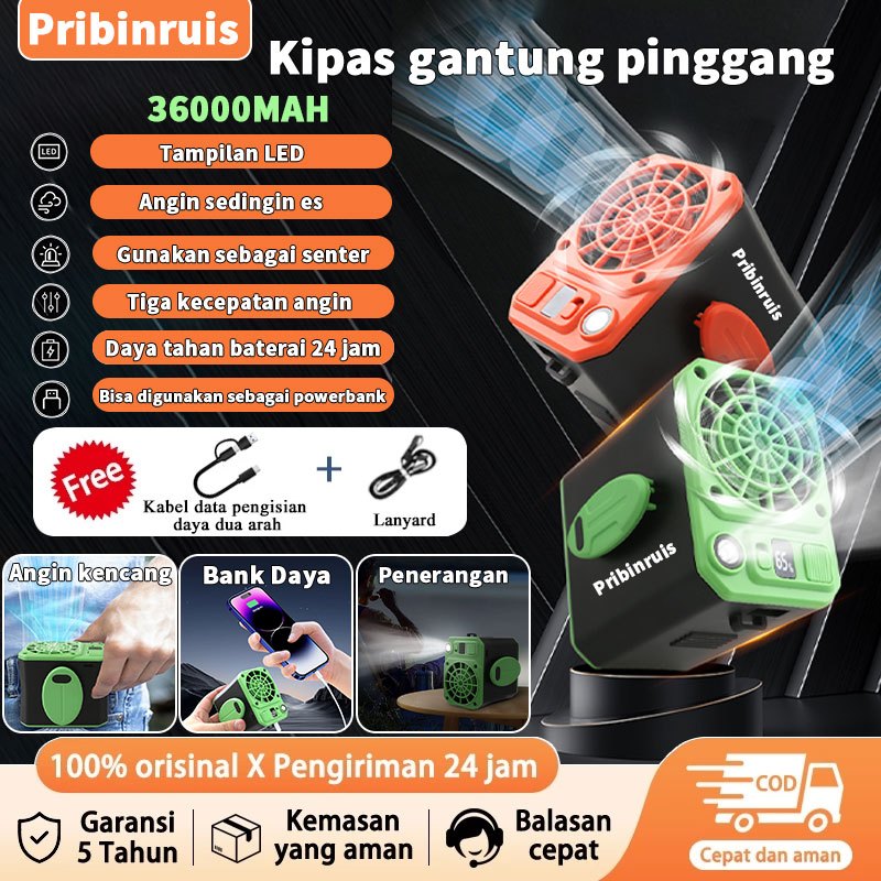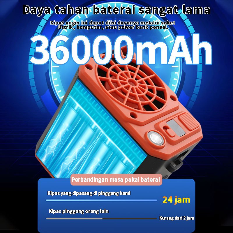 PRIBINRUIS 【】kipas angin pinggang 36000mAh kipas powerbank LED Sumber daya seluler
