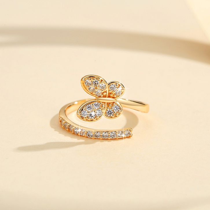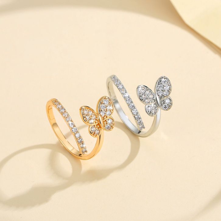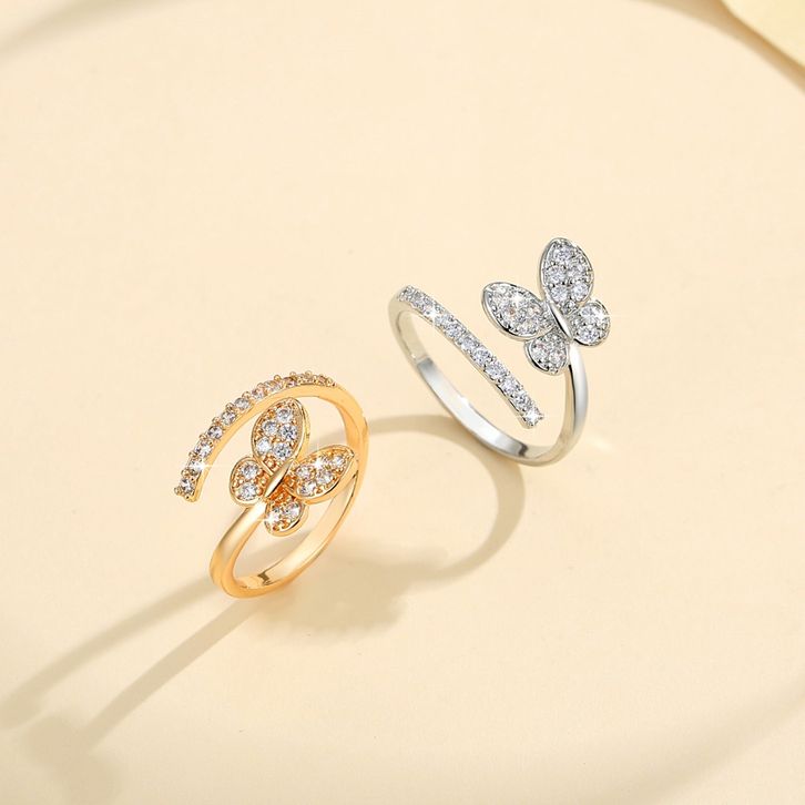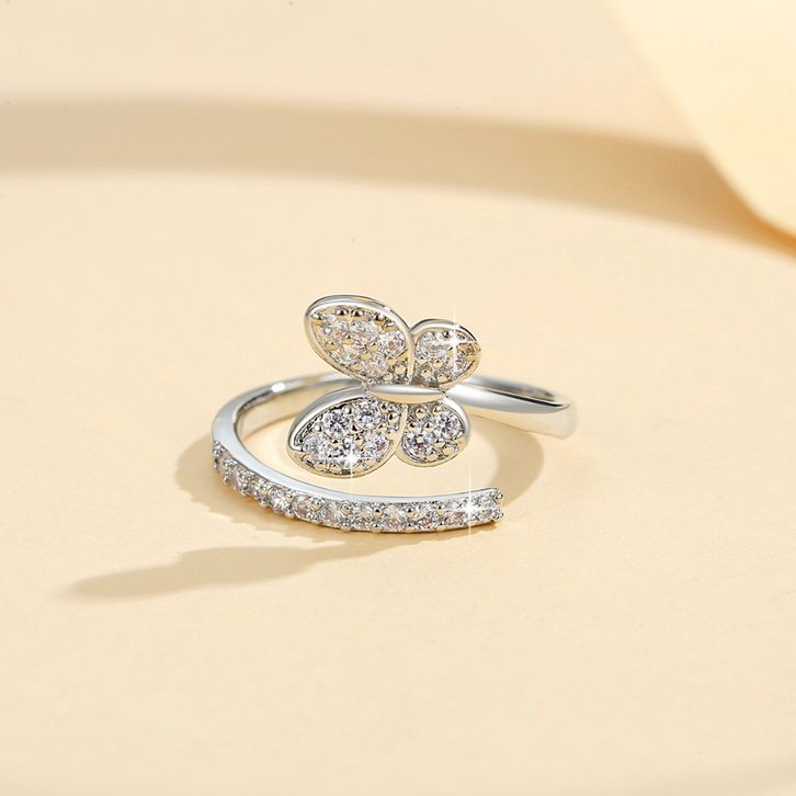 Lanmi Jewelry Cincin Titanium Anti Karat Kristal Kupu -Kupu Zirkon Mewah Wanita Adjustable Pernikahan Perhiasan LM311