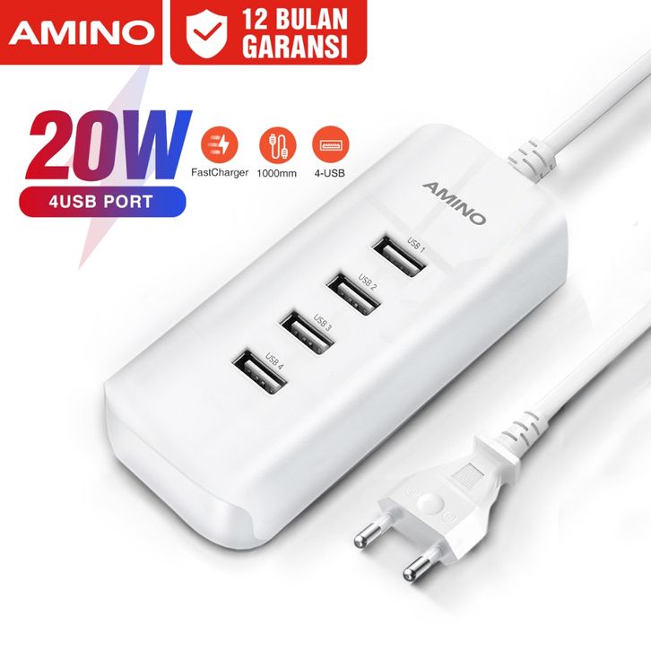 TERMURAH AMINO 4 USB Port Multi Port Charger Fast Charger LED Function 5V 2A 20W ohibl