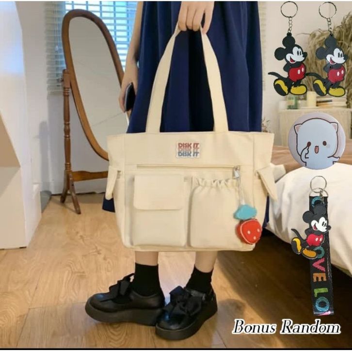GRATIS ONGKIR Tas Totebag Wanita Korean Style Bahan Kanvas Tas Selempang Slingbag Tote Bag Kuliah Kerja Terbaru