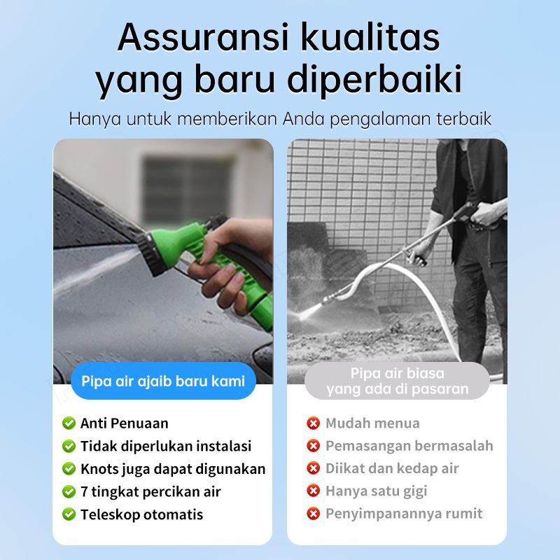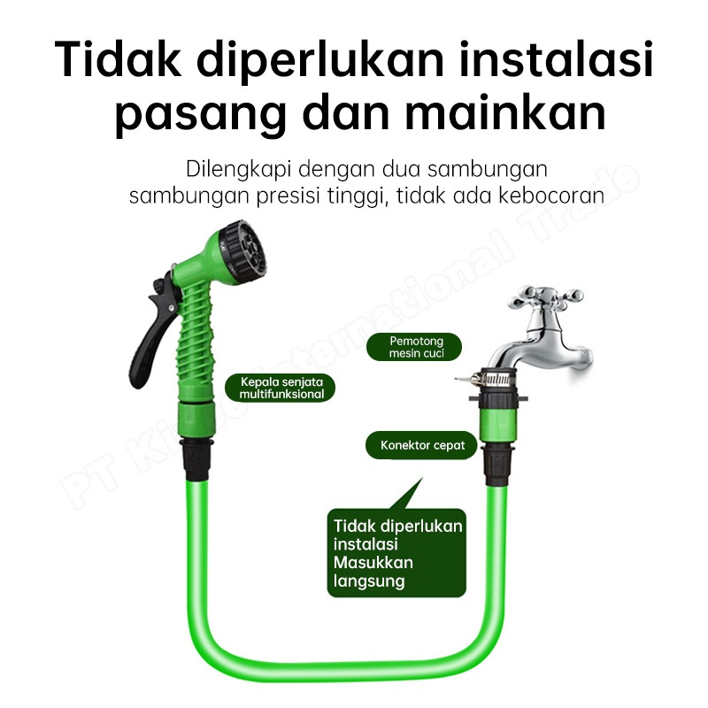 Haseris selang air Selang Dapat Diperluas Tekanan Kuat 7M 360° Putar Tombol Stop Air Hemat Air!
