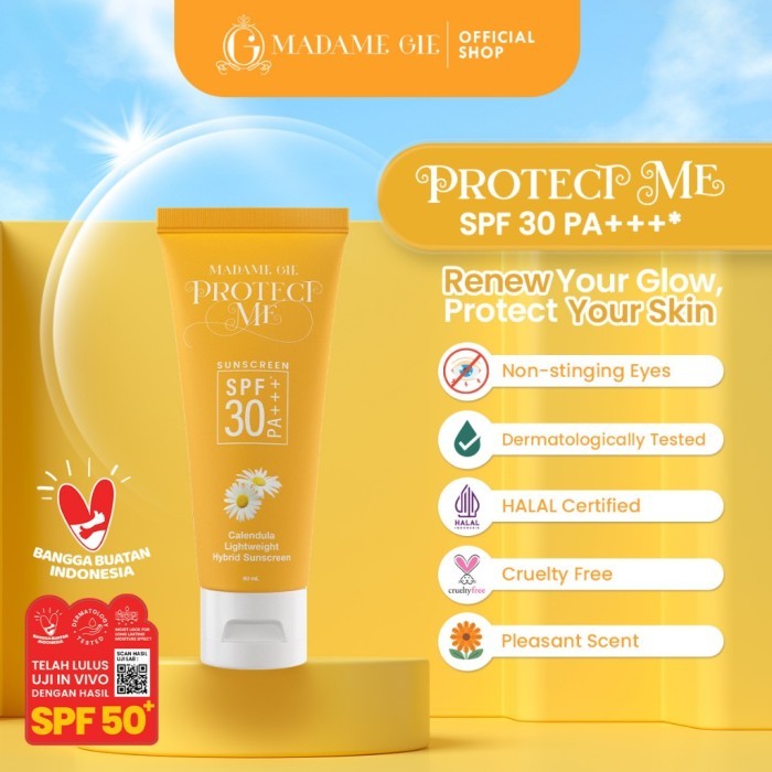 Madame Gie Protect Me Sunscreen SPF 30 PA +++ 50ml With Calendula Sunblock | Merah Jingga Official