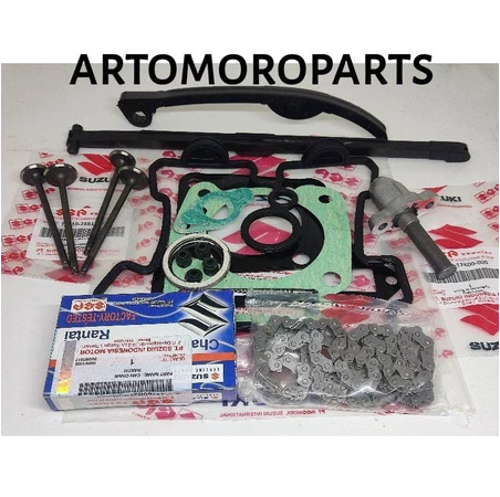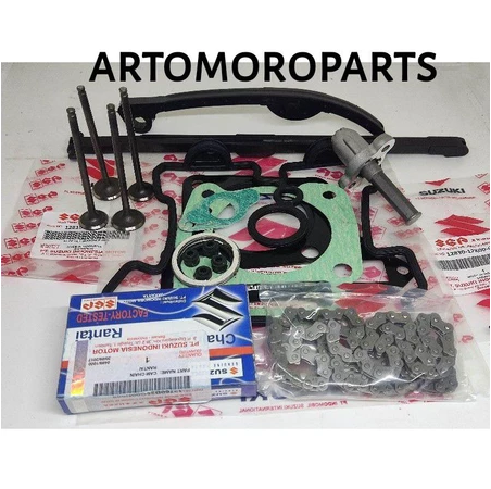 Paket Karet Lidah Tensioner + Karet Head + Topset + Tonjokan + Rantai Keteng + Klep Set + Sil Klep Satria FU 150 Old Lam