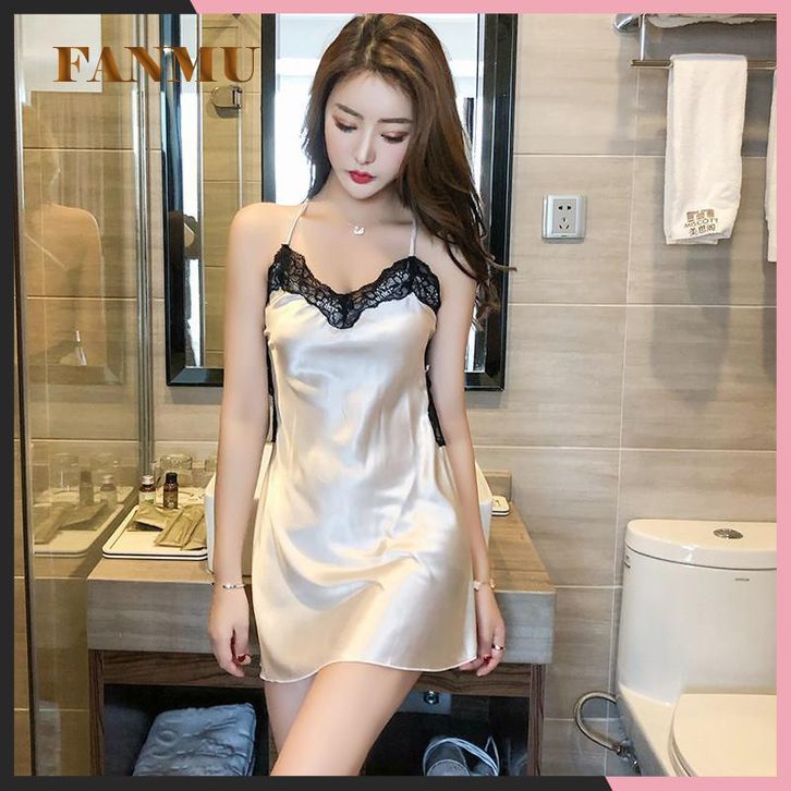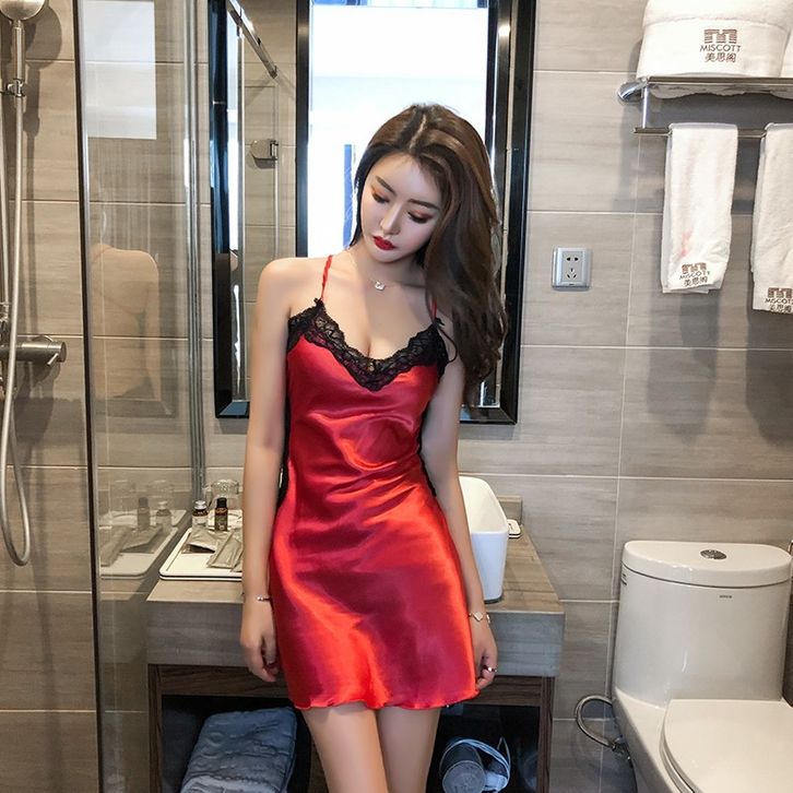 2023 Baru Selempang Renda Satin Baju Tidur Wanita Es Sutra Seksi Rumah Memakai Piyama