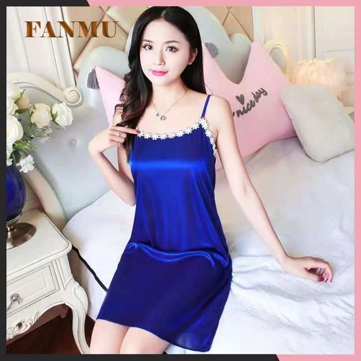 Piyama sling sutra es baru wanita musim panas lucu layanan rumah Korea MM gemuk bisa dipakai