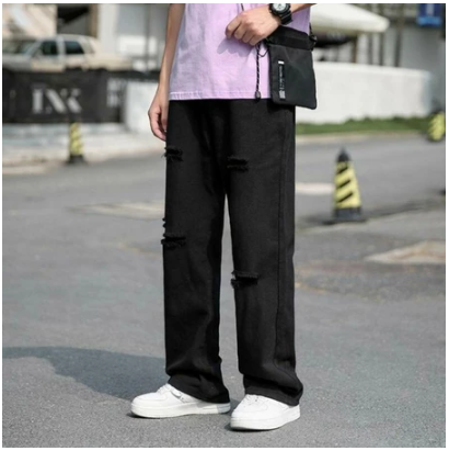 CELANA SOBEK PRIA STANDAR BASIC REGULER RIPPED JEANS JINS DENIM PANJANG ROBEK DENIM 27-38