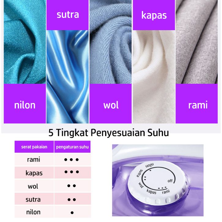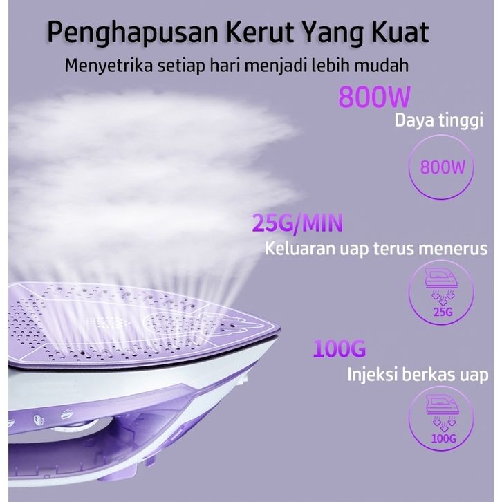 Setrika Uap Handheld Portable Multifungsi Low Watt 800W Tapak Non-Stick