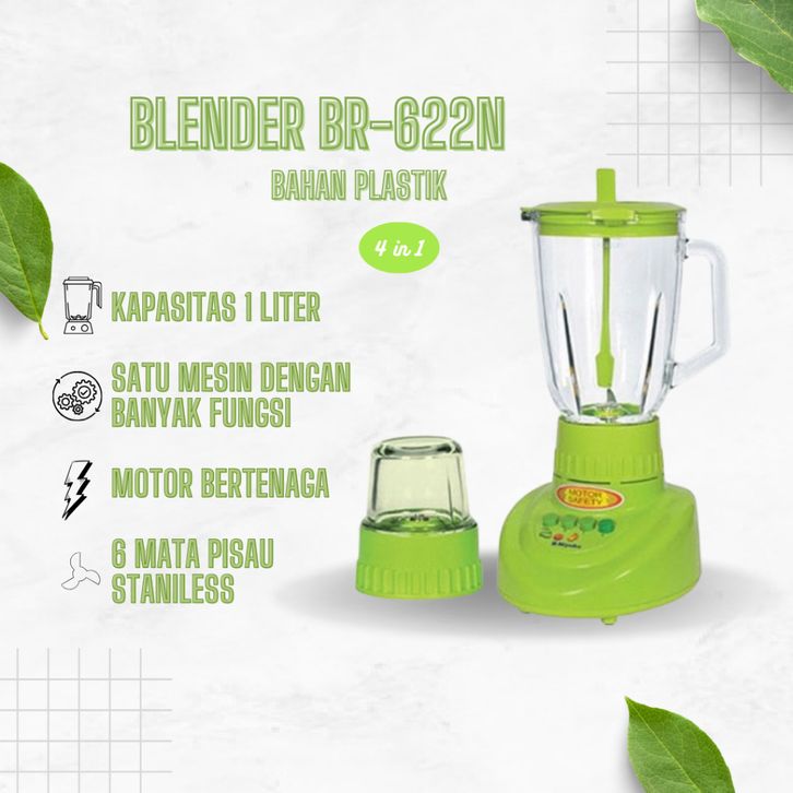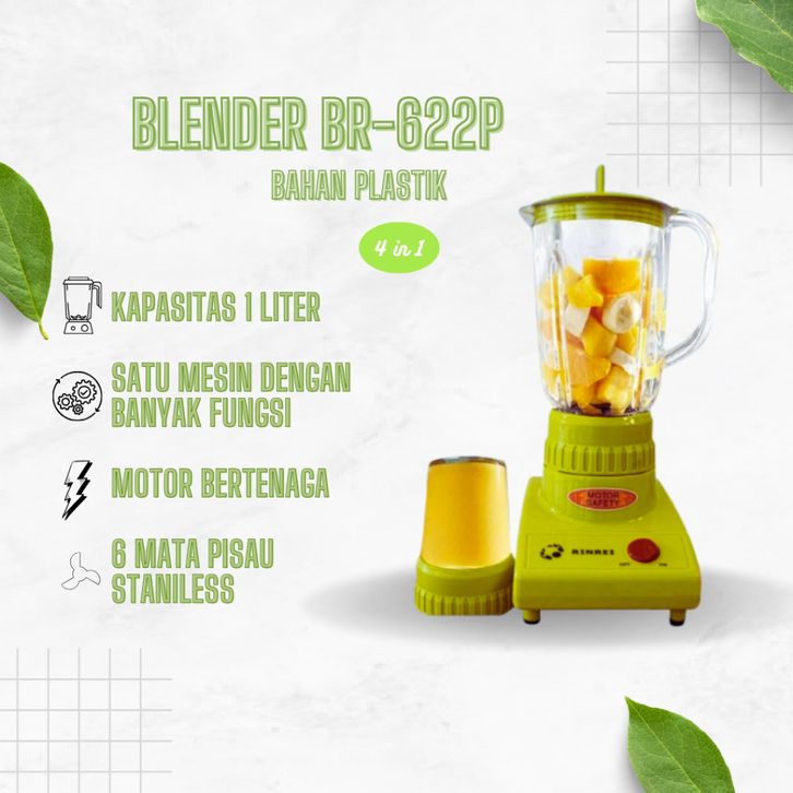 Blender Rinrei NASIONAL BR-622 6 Mata Pisau Stainless Steel 150W dengan Wadah Plastik