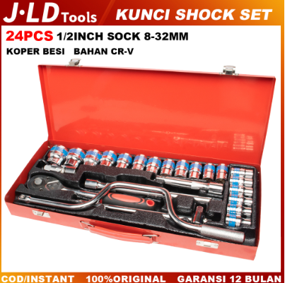 JLD 24 Pcs kunci shock set kunci Socket 8-32mm Impact Kunci mata Mata Shock Motor Lengkap Socket set Koper besi CR-V