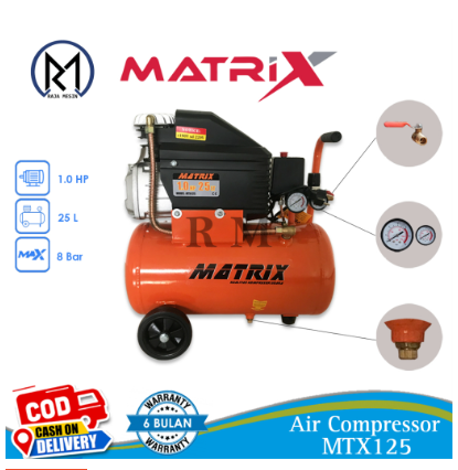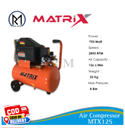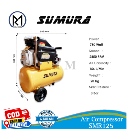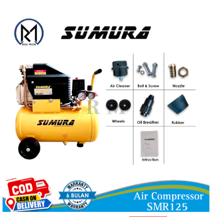 Kompresor Angin Listrik / Air Compressor Matrix MTX125 (1HP, 25 Liter)/Air Compressor Sumura SMR125 (1HP, 25) Liter+ Pac