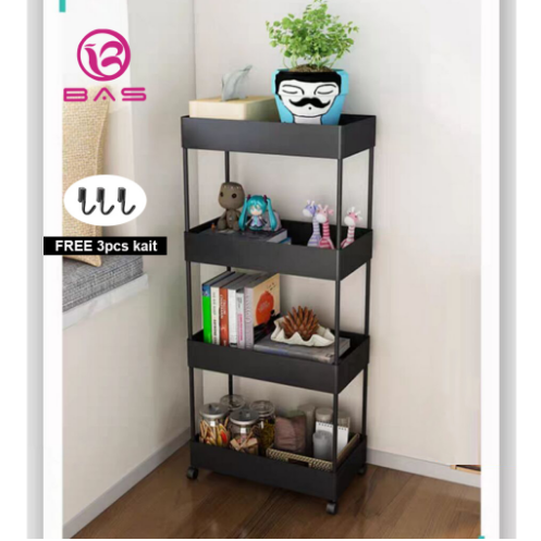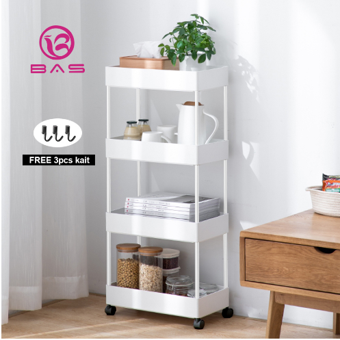 BAS square rak troli rak dapur rak serbaguna 4 tingkat dengan roda