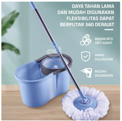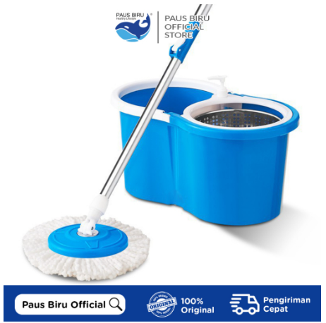 Paus Biru - Alat Pel Lantai Stainless Super Mop Dengan Ember Pencuci Putar 360°